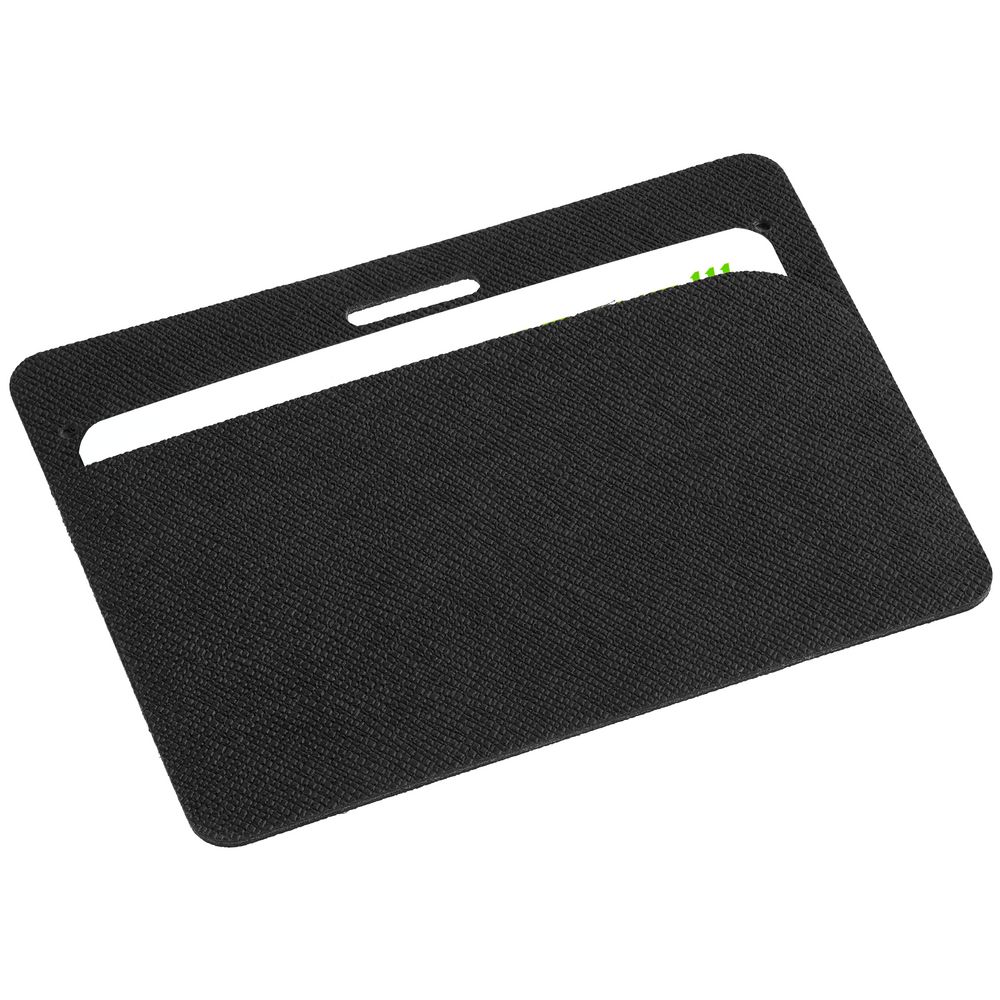 Чехол для карточки с пластиковым окошком из искусственного материала, имитирующего сафьяновую кожу.