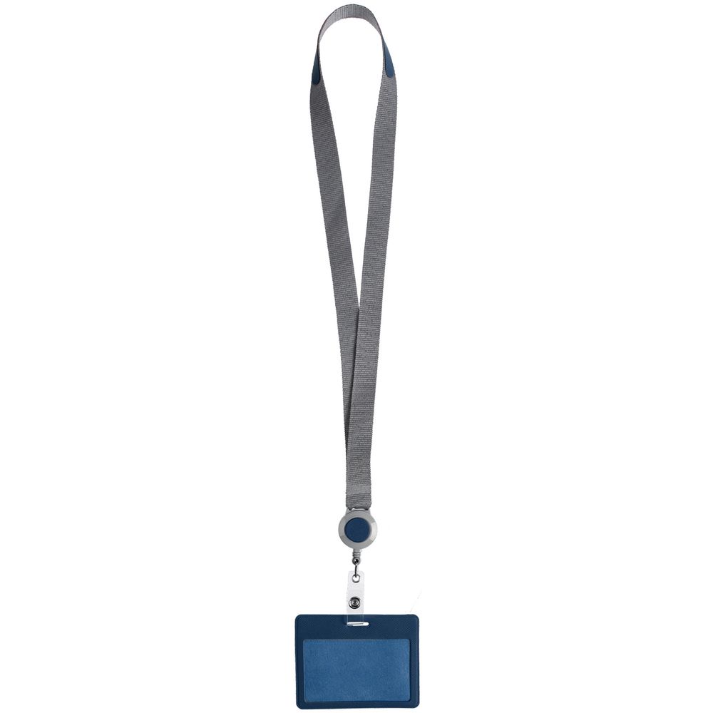 Чехол для карточки с лентой и ретрактором Devon, синий