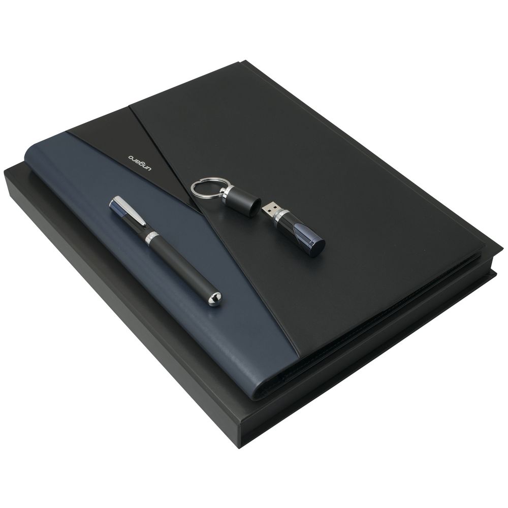 Набор Lapo: папка с блокнотом А4, роллер и флешка 16 Гб, черный