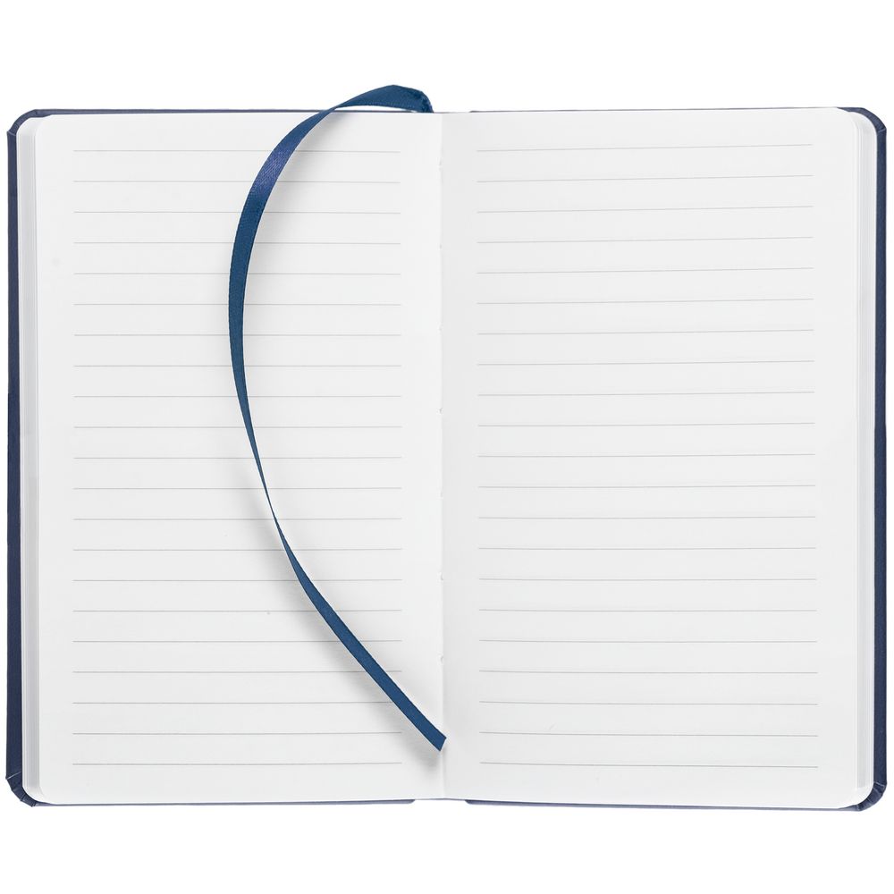 Блокнот с твердой обложкой, выполнен из материала Latte, темно-синего цвета XX, дополнен ляссе в цвет обложки.