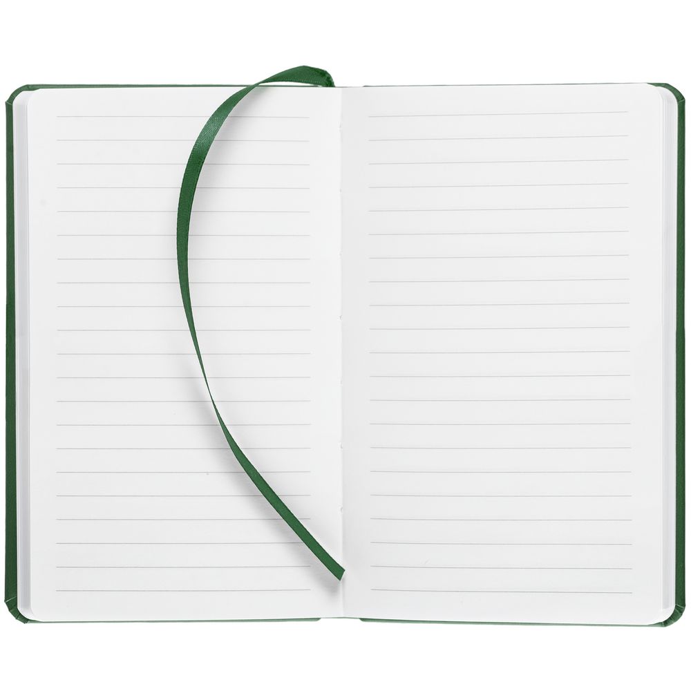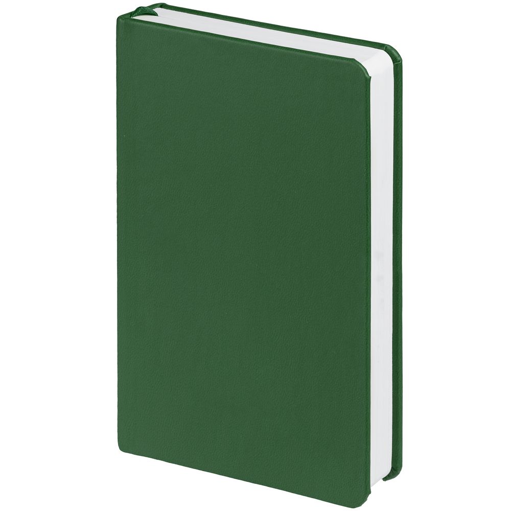Блокнот с твердой обложкой, выполнен из материала Latte, зеленого цвета FF, дополнен ляссе в цвет обложки.