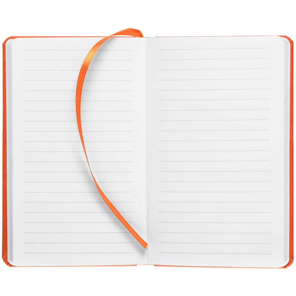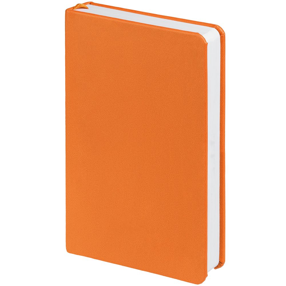 Блокнот с твердой обложкой, выполнен из материала Latte, оранжевого цвета ОО, дополнен ляссе в цвет обложки.