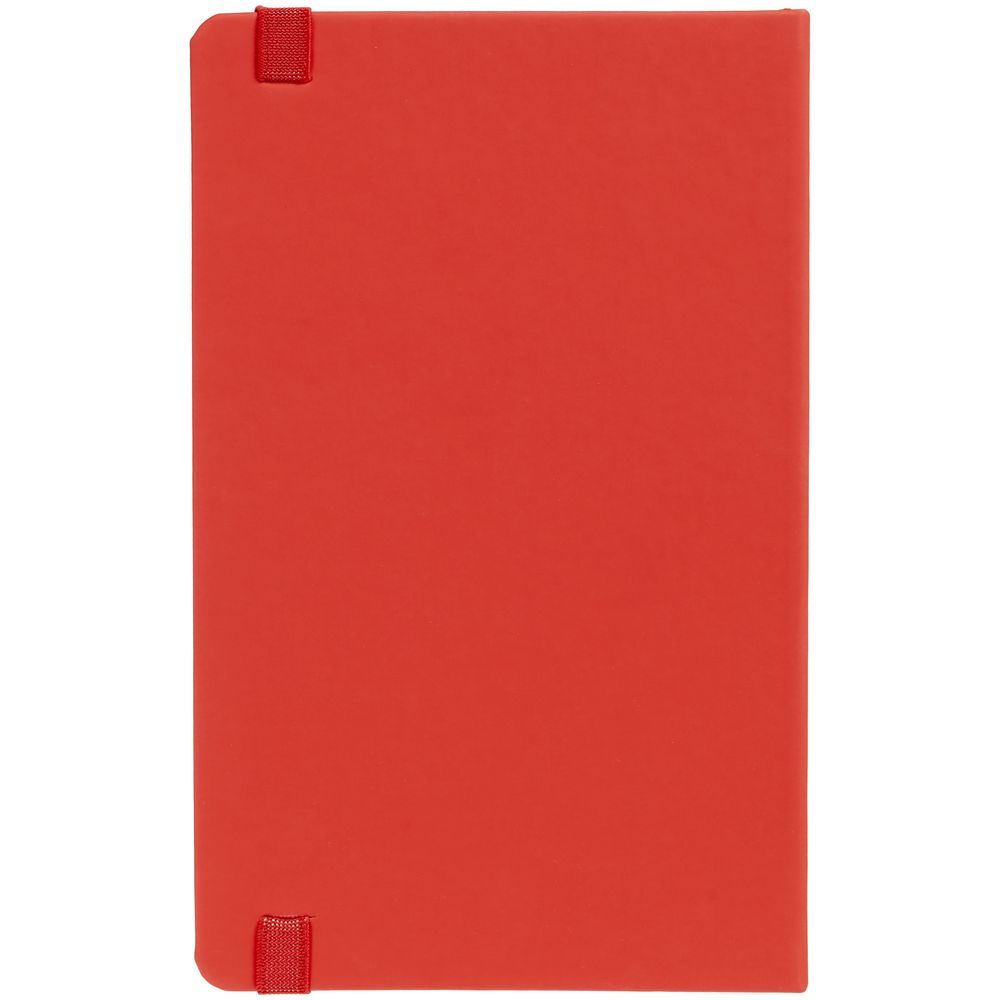 Блокнот в твердой обложке, выполнен из материала Soft Touch Ultra, красный РР, дополнен резинкой и ляссе в цвет обложки.