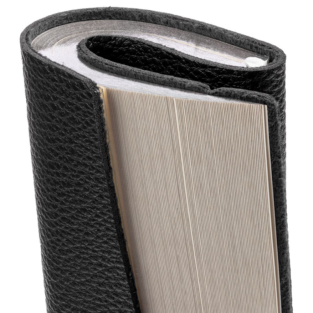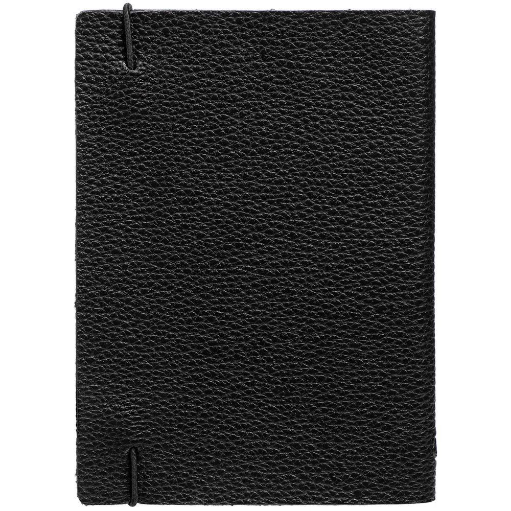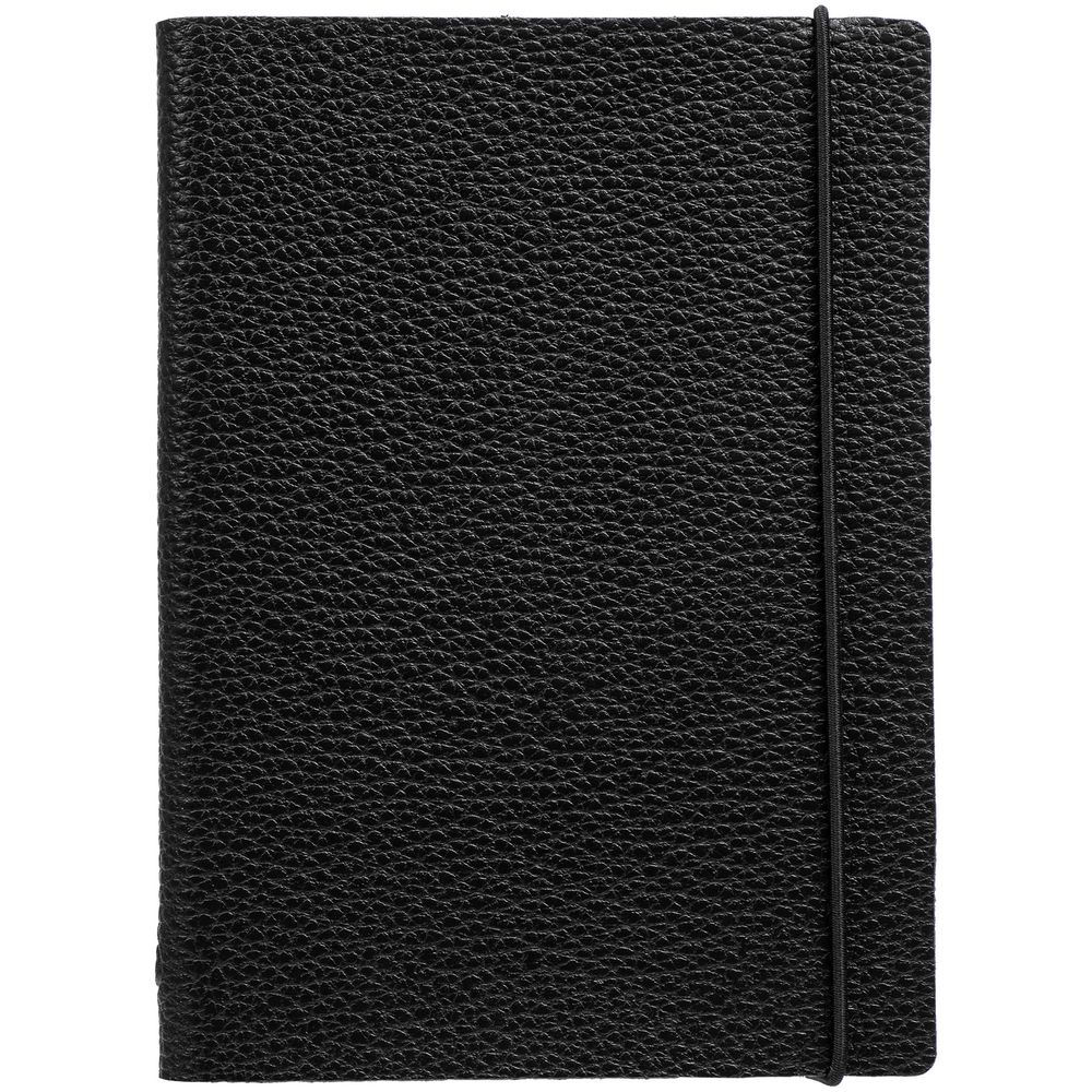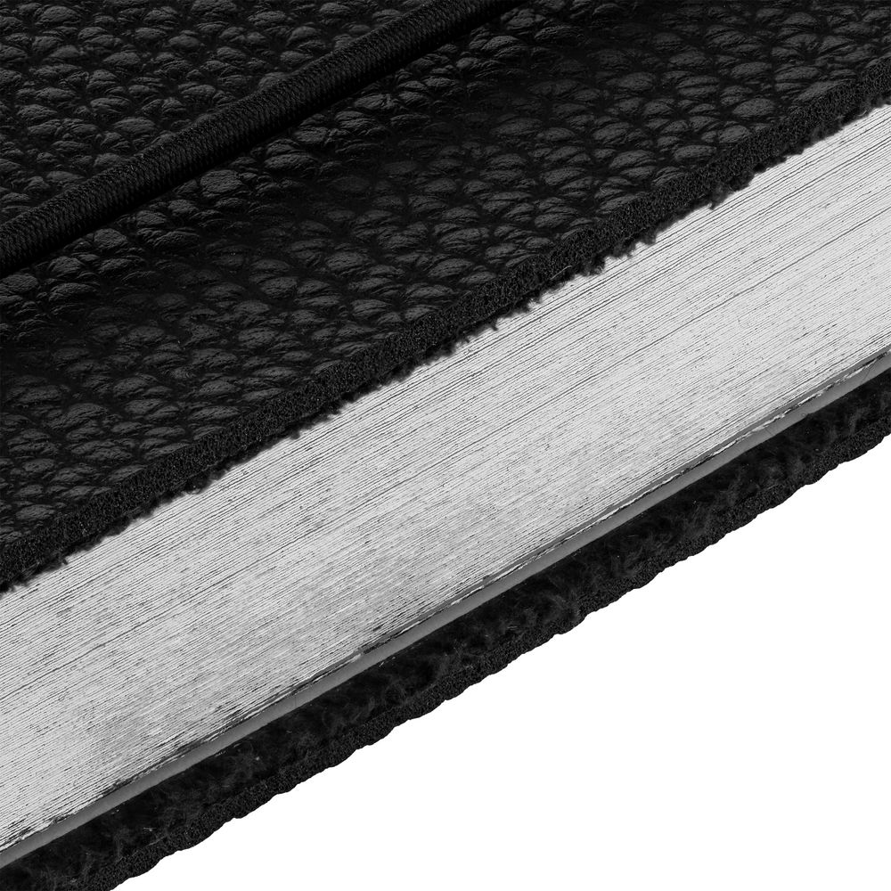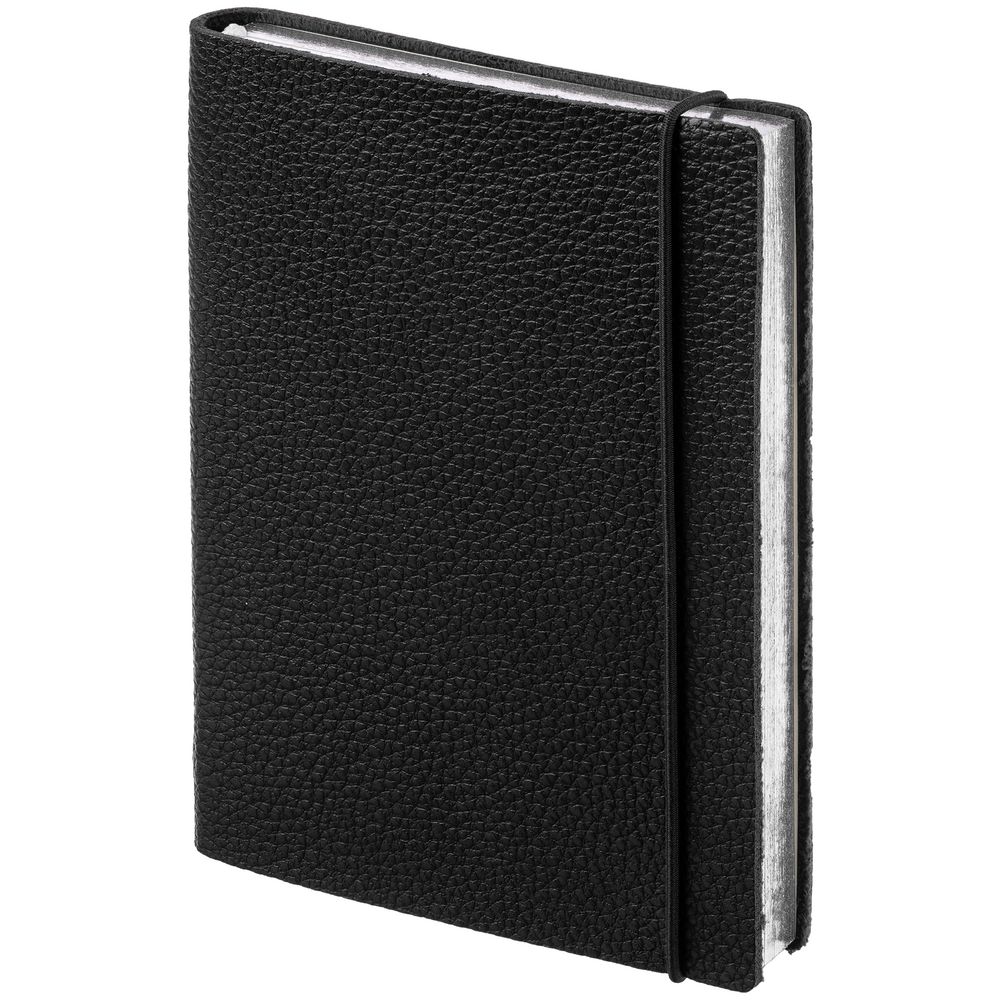 Блокнот в гибкой обложке из фактурного материала с круглой резинкой и посеребренным обрезом.