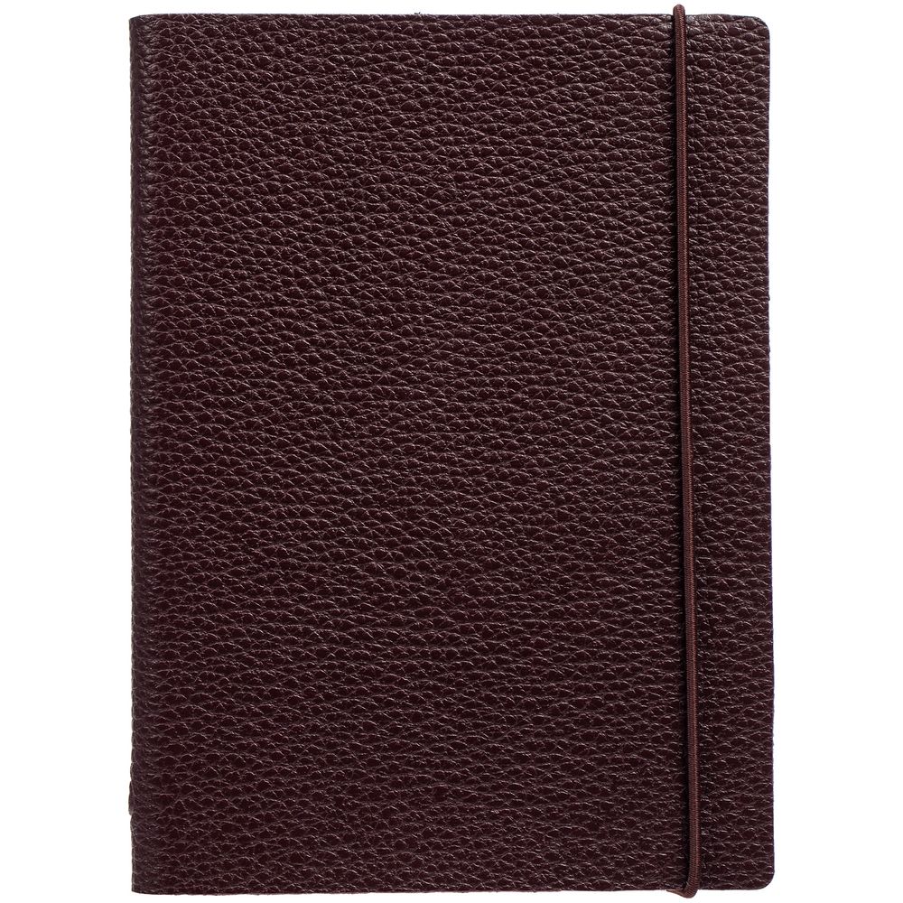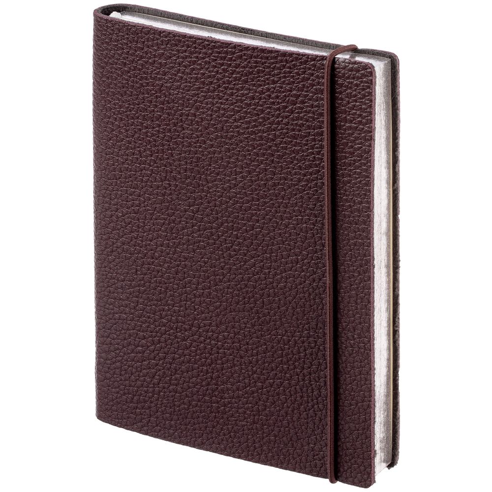 Блокнот в гибкой обложке из фактурного материала с круглой резинкой и посеребренным обрезом.