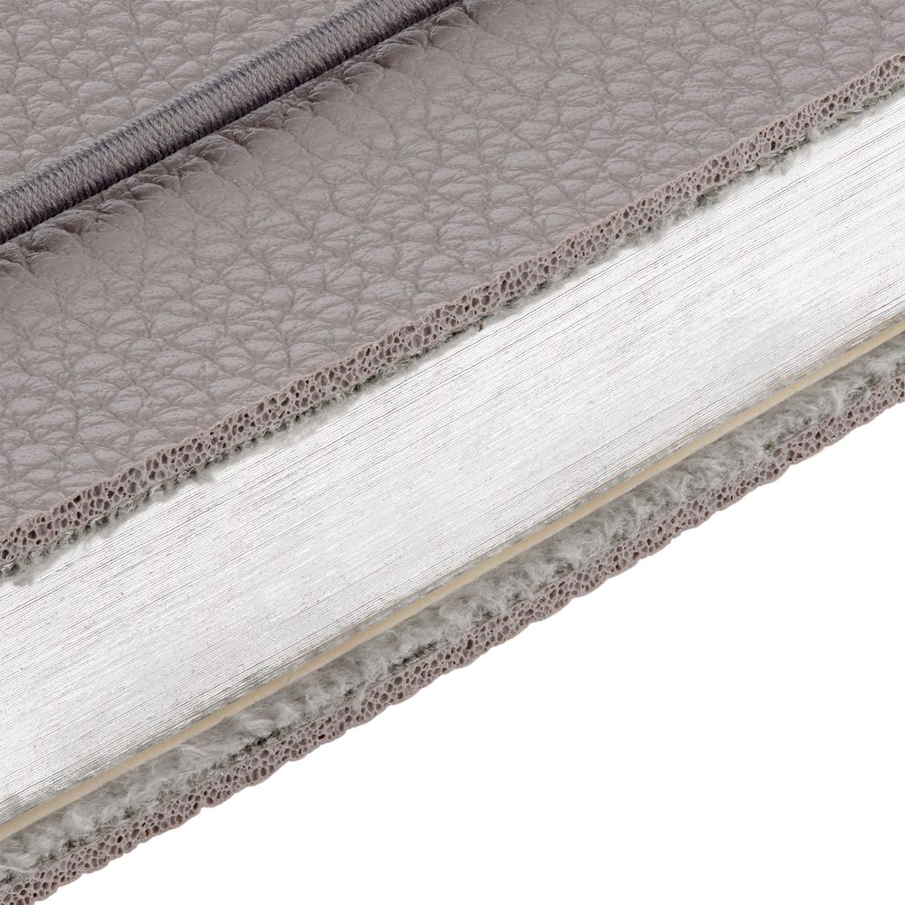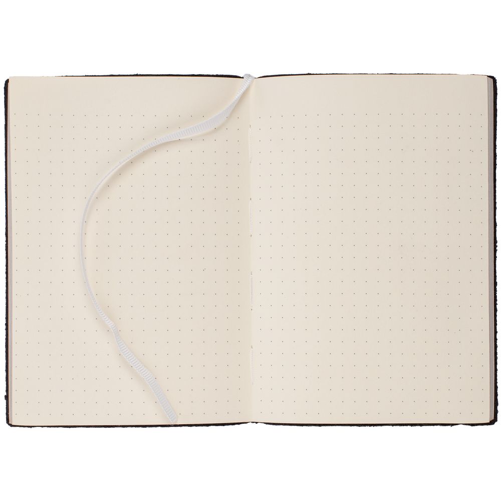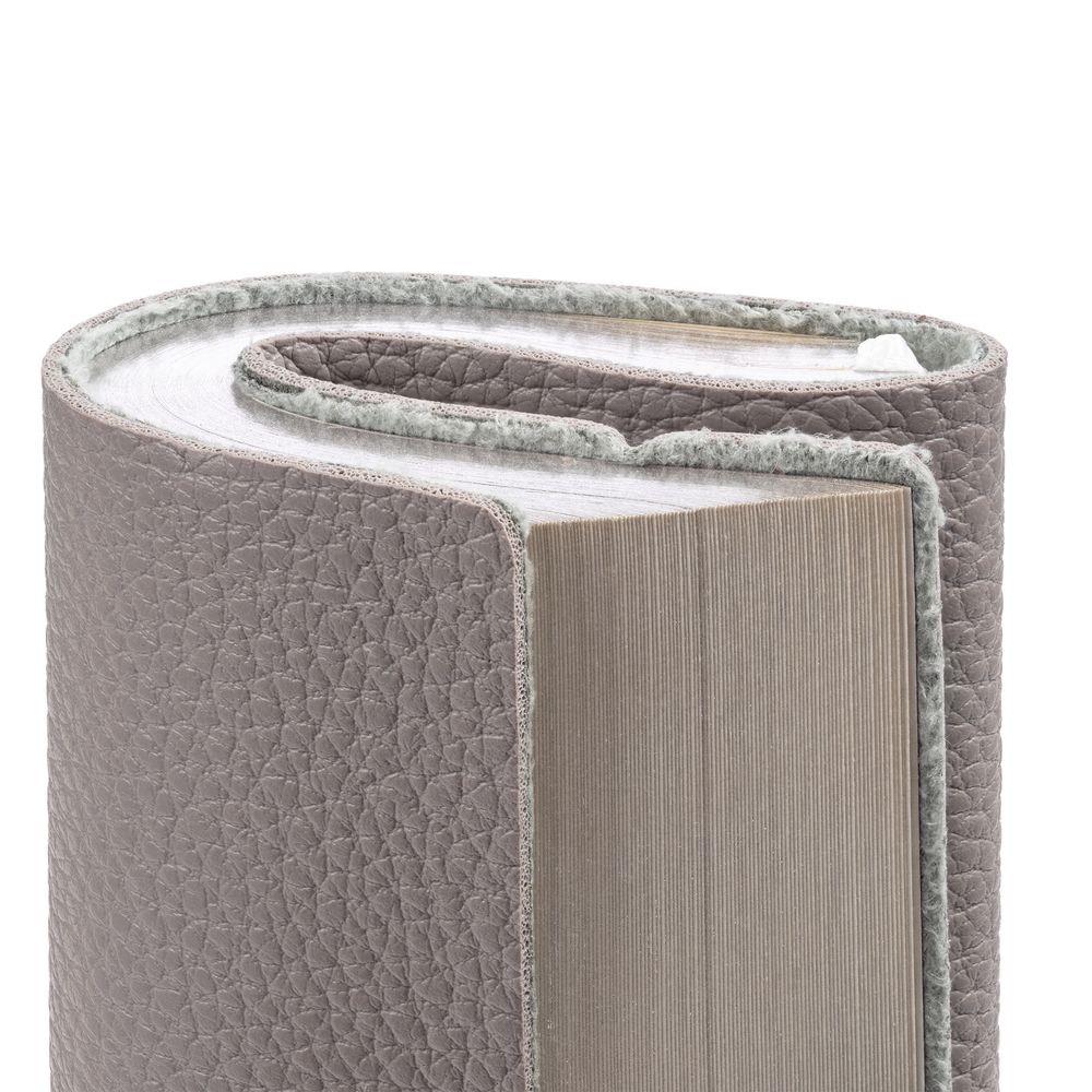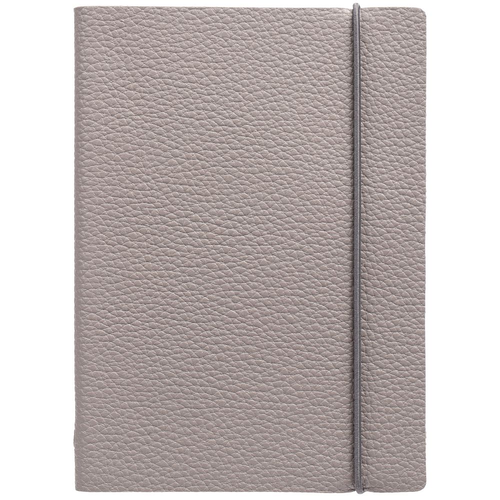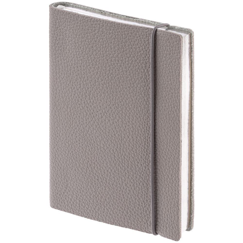 Блокнот в гибкой обложке из фактурного материала с круглой резинкой и посеребренным обрезом.