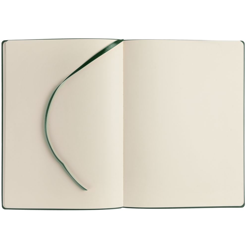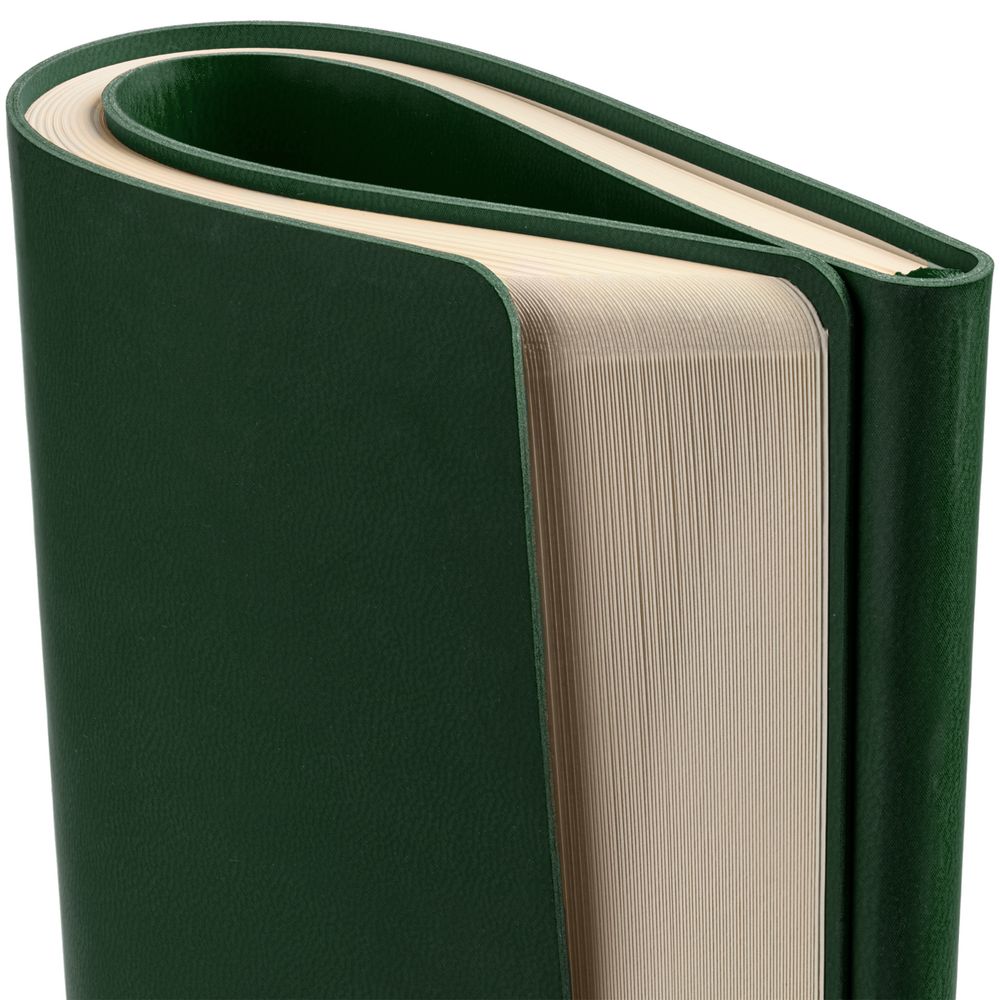 Блокнот с гибкой обложкой из двух слоев материала Latte зеленый FF, дополнен ляссе в цвет обложки.