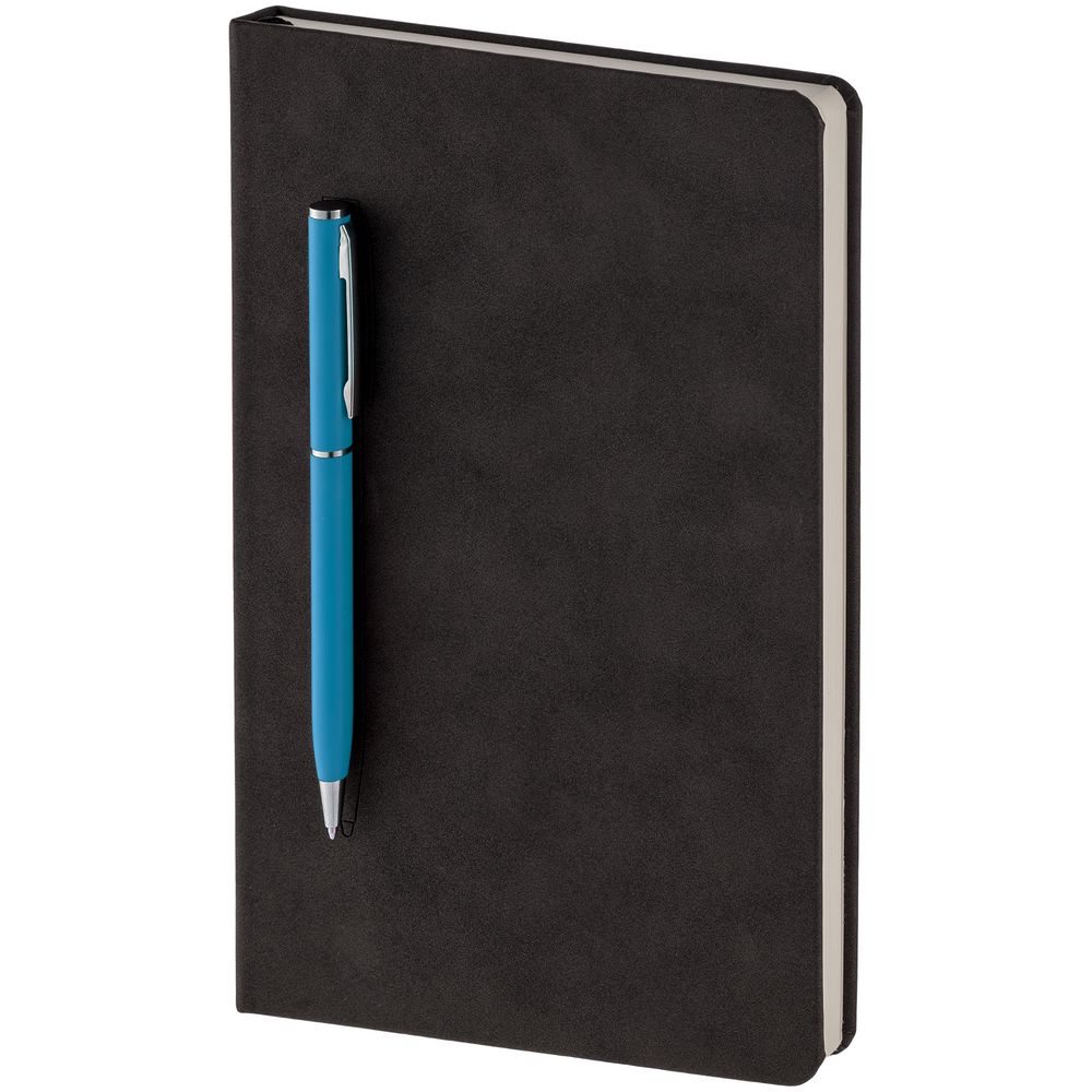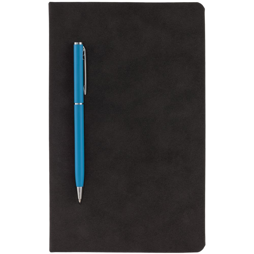 Блокнот Magnet Chrome с ручкой, черный с голубым
