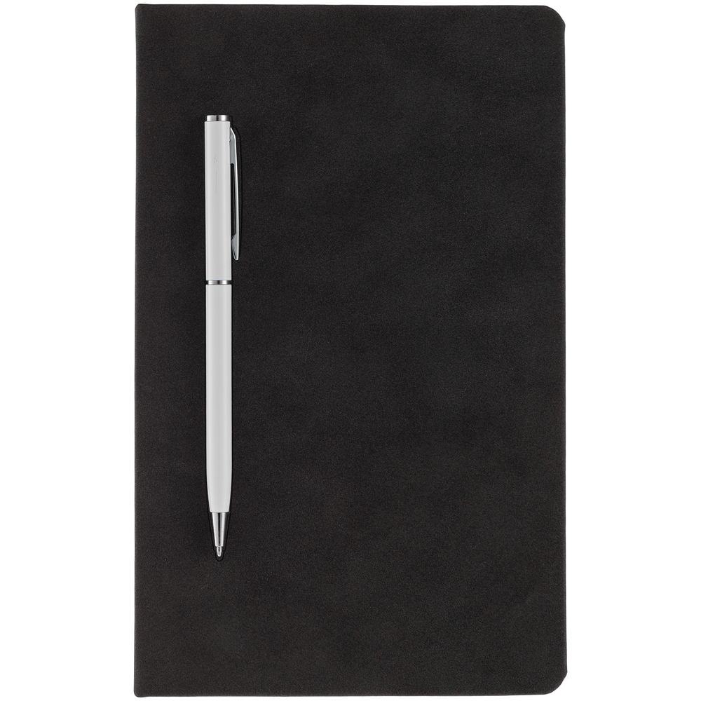 Блокнот Magnet Chrome с ручкой, черный с белым