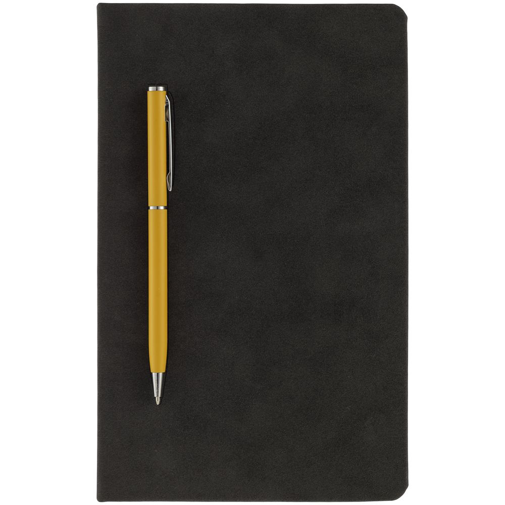 Блокнот Magnet Chrome с ручкой, черный с желтым