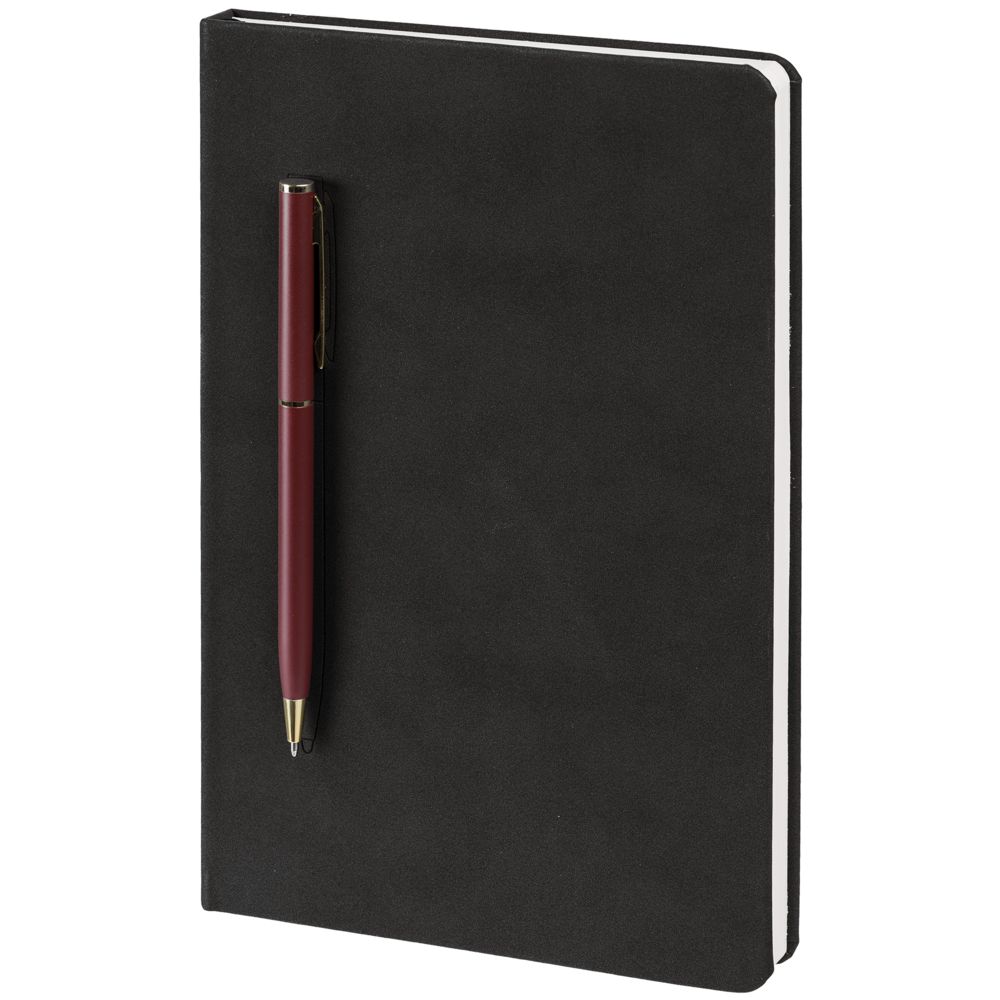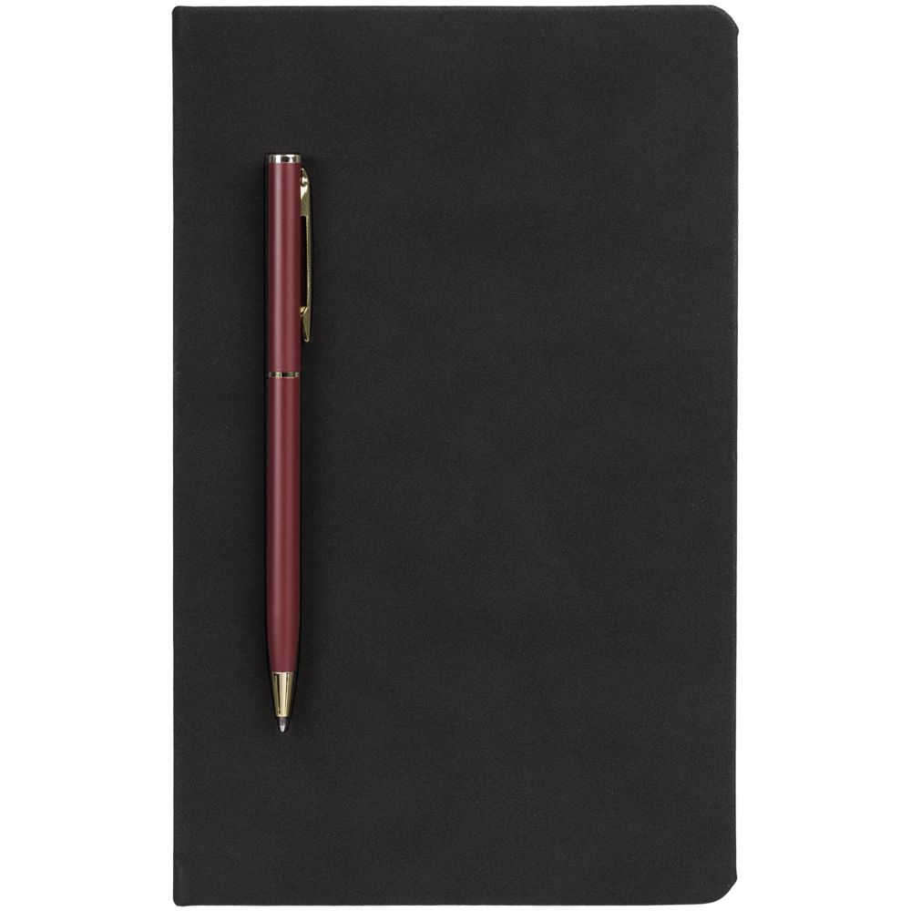 Блокнот Magnet Gold с ручкой, черный с бордовым