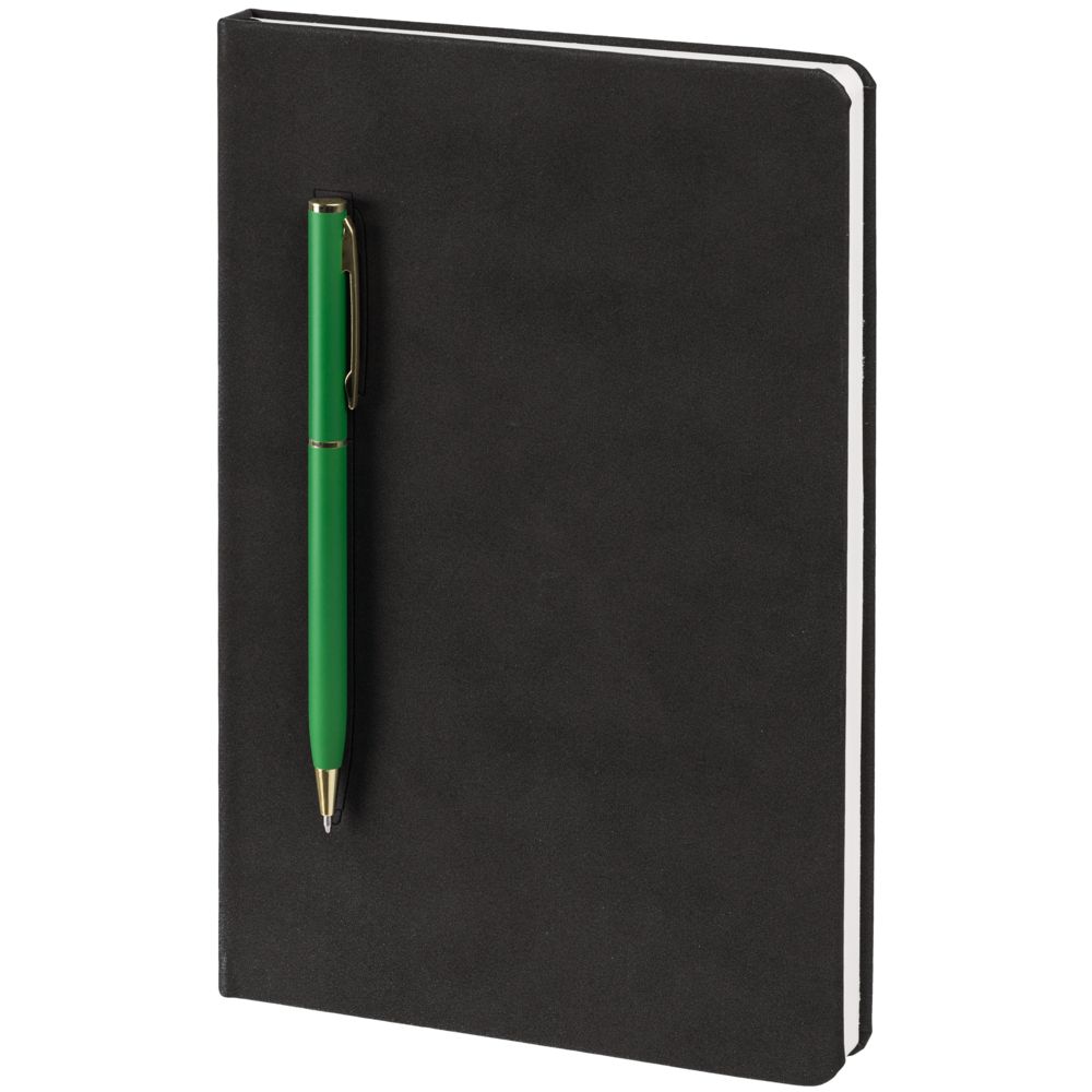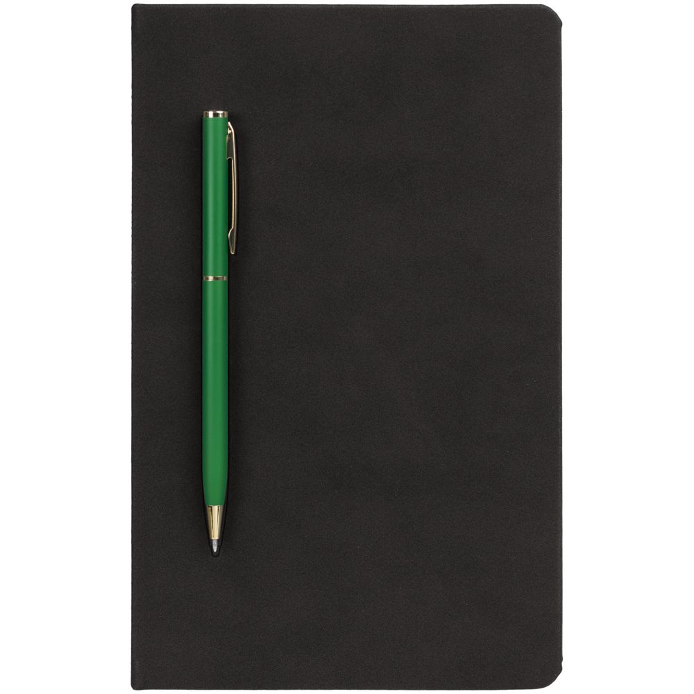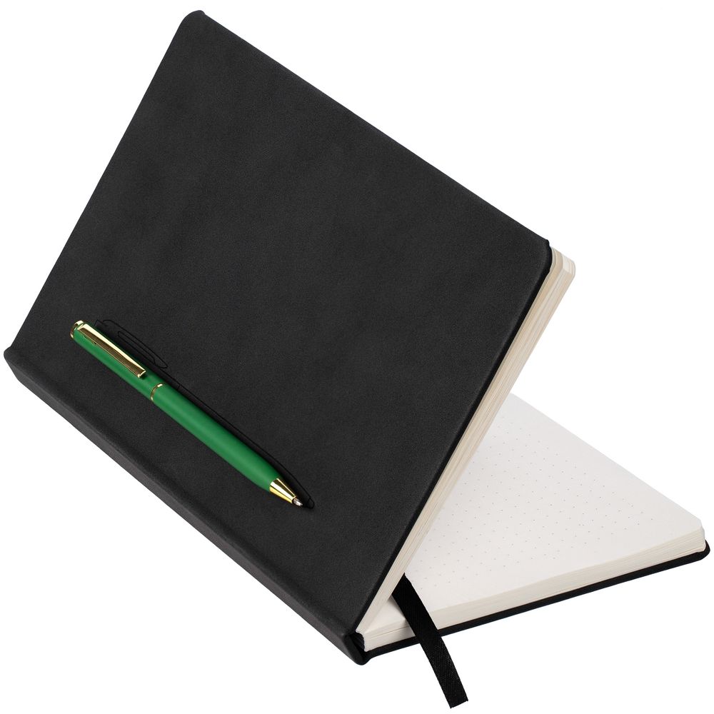Блокнот Magnet Gold с ручкой, черный с зеленым