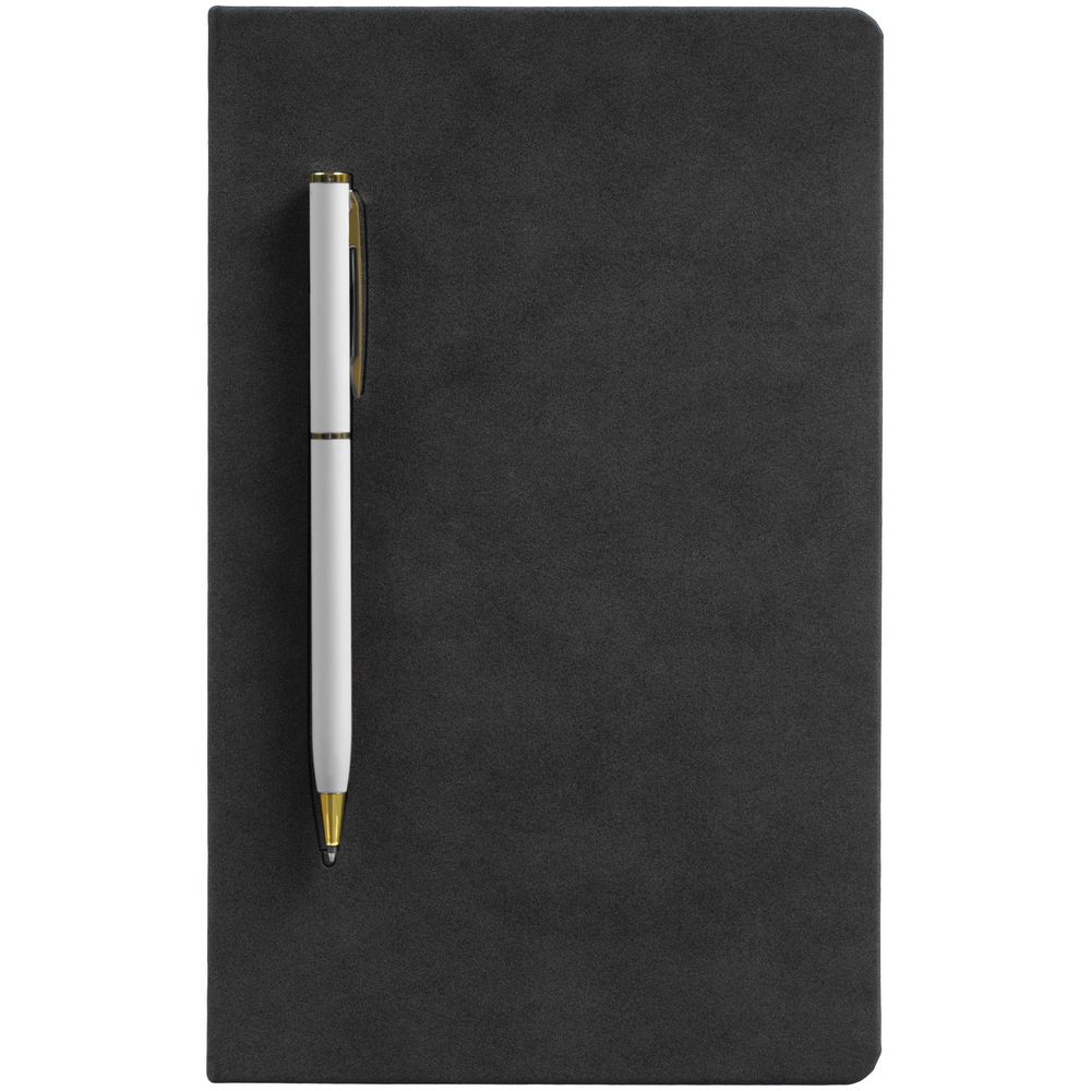 Блокнот Magnet Gold с ручкой, черный с белым