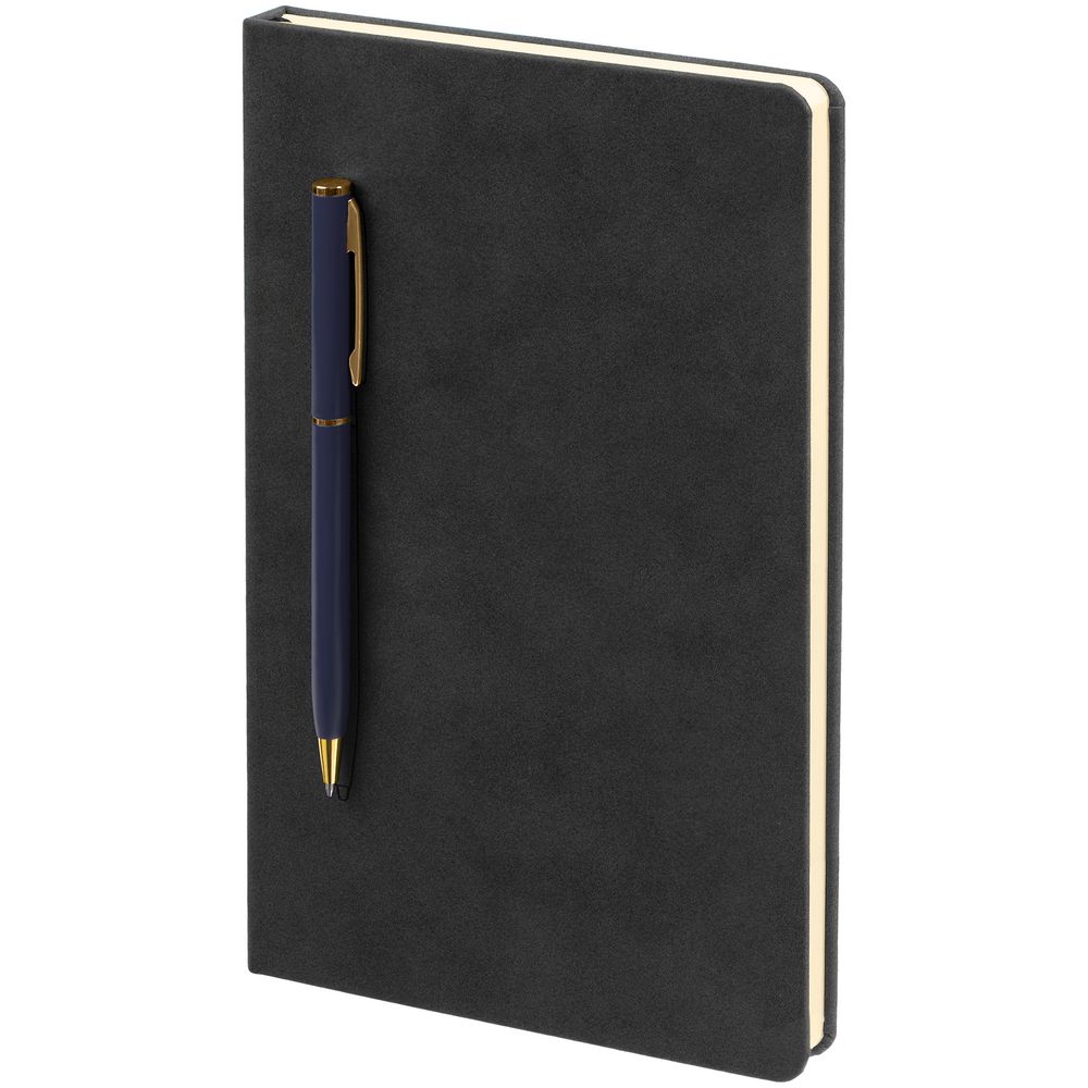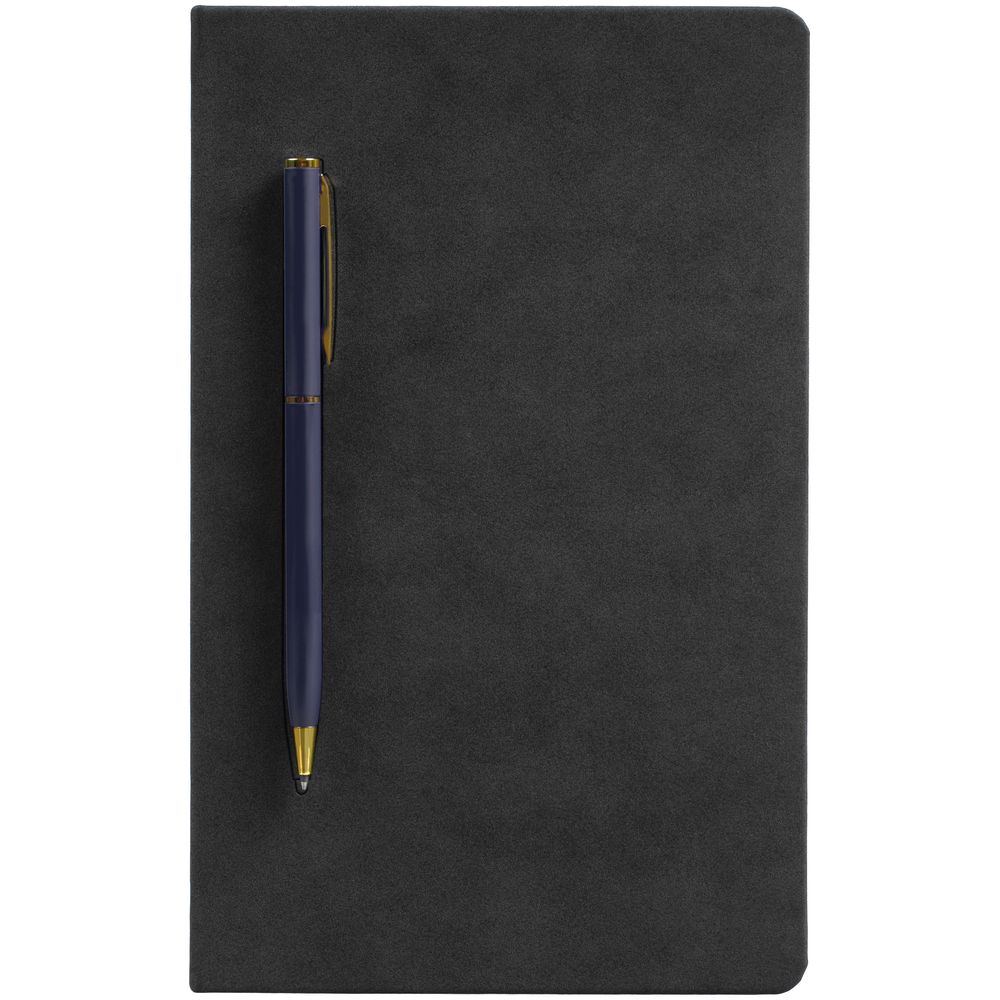 Блокнот Magnet Gold с ручкой, черный с синим