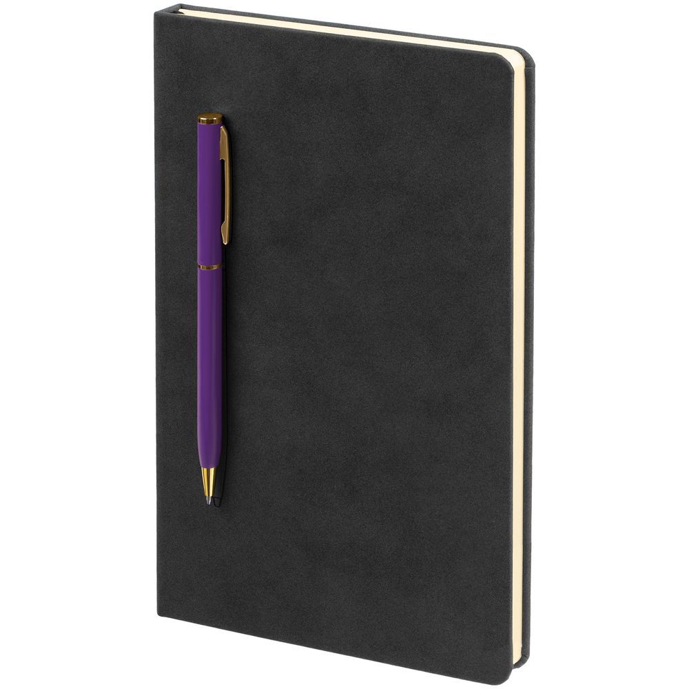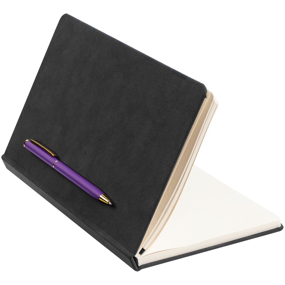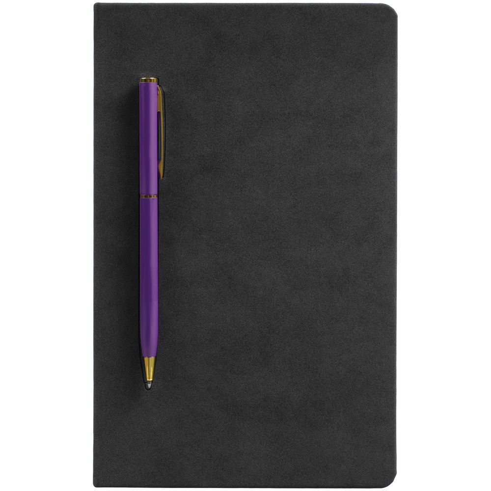 Блокнот Magnet Gold с ручкой, черный с фиолетовым