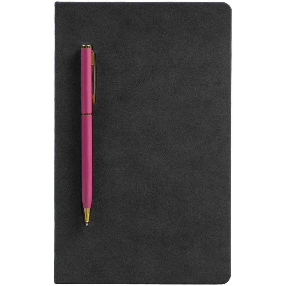 Блокнот Magnet Gold с ручкой, черный с розовым