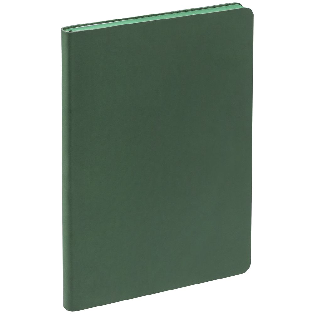 Блокнот с гибкой обложкой, выполнен из материала Soft Touch, зеленый FF и Latte, зеленый FF (внутренний материал).