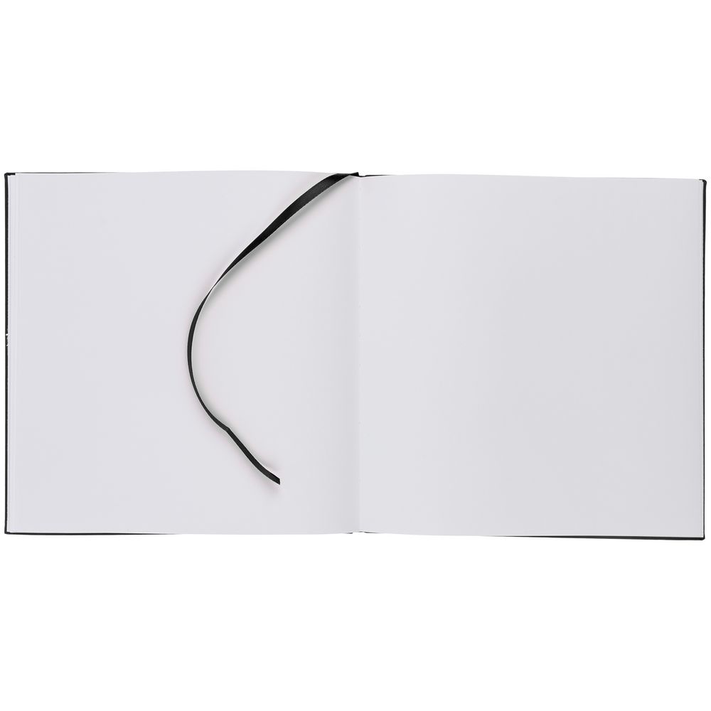 Скетчбук с твердой обложкой выполнен из материала Soft Touch, черный АА, дополнен ляссе в цвет обложки.