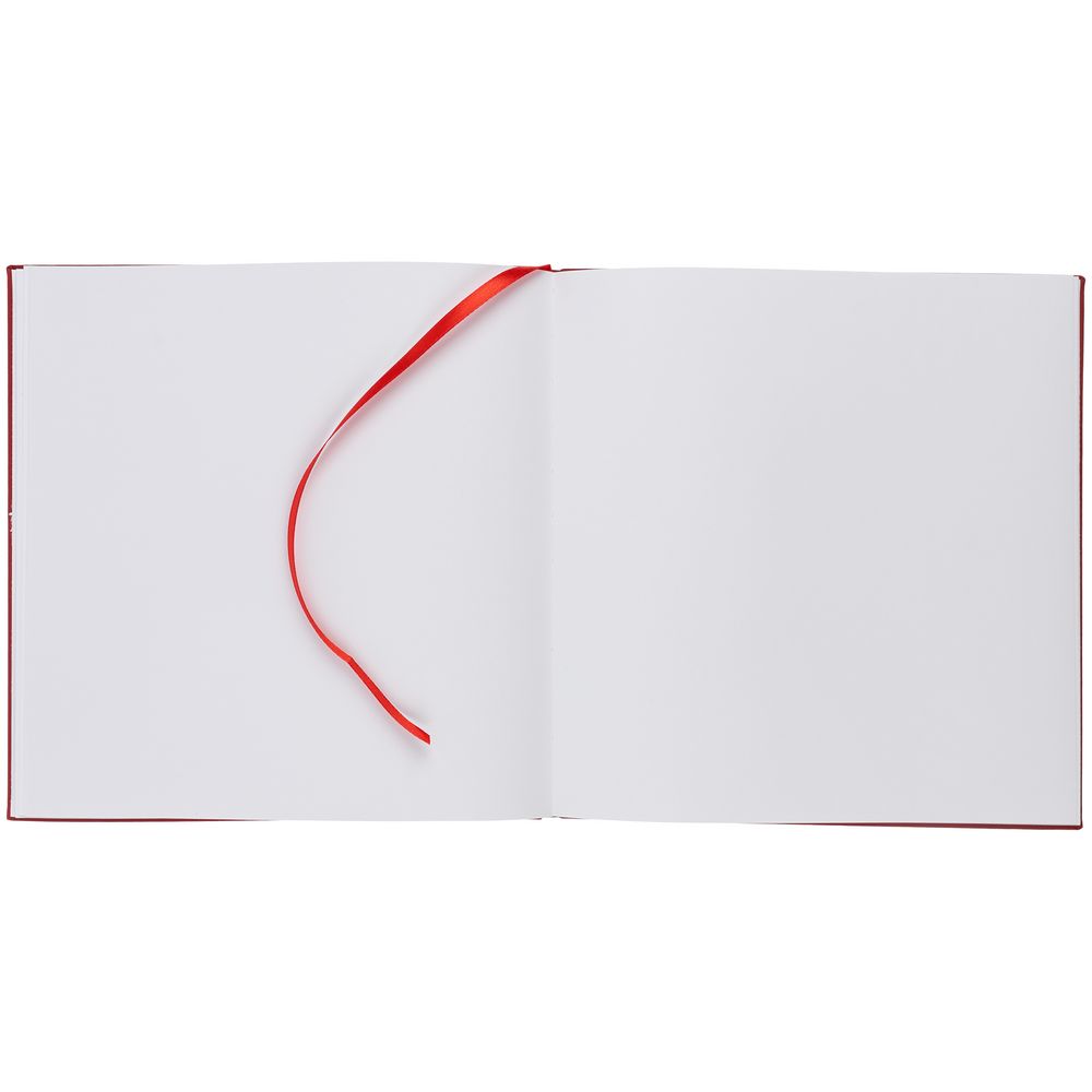 Скетчбук с твердой обложкой выполнен из материала Soft Touch, красный РР, дополнен ляссе в цвет обложки.