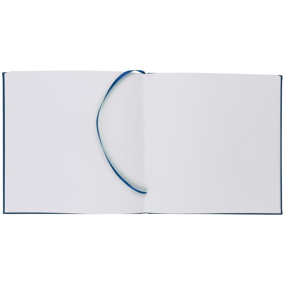Скетчбук с твердой обложкой выполнен из материала Soft Touch, синий НН, дополнен ляссе в цвет обложки.