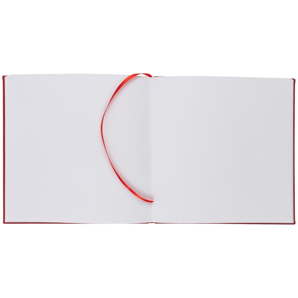 Скетчбук с твердой обложкой выполнен из материала Soft Touch, красный РР, дополнен ляссе в цвет обложки.