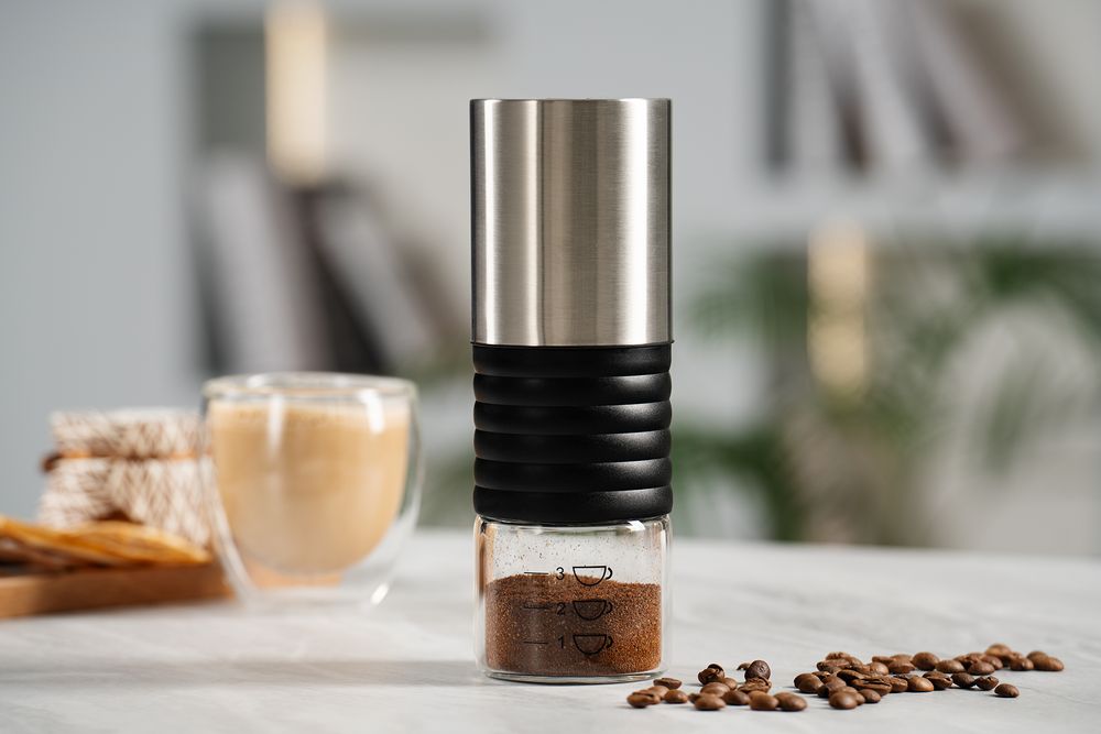 Кофемолка Moxie — желанный подарок для кофемана. Кофемолка работает очень тихо — не потревожит никого из домочадцев ранним утром. Питание осуществляется от встроенного аккумулятора. Степень помола регулируется вручную.