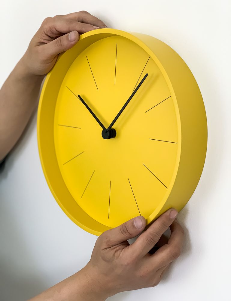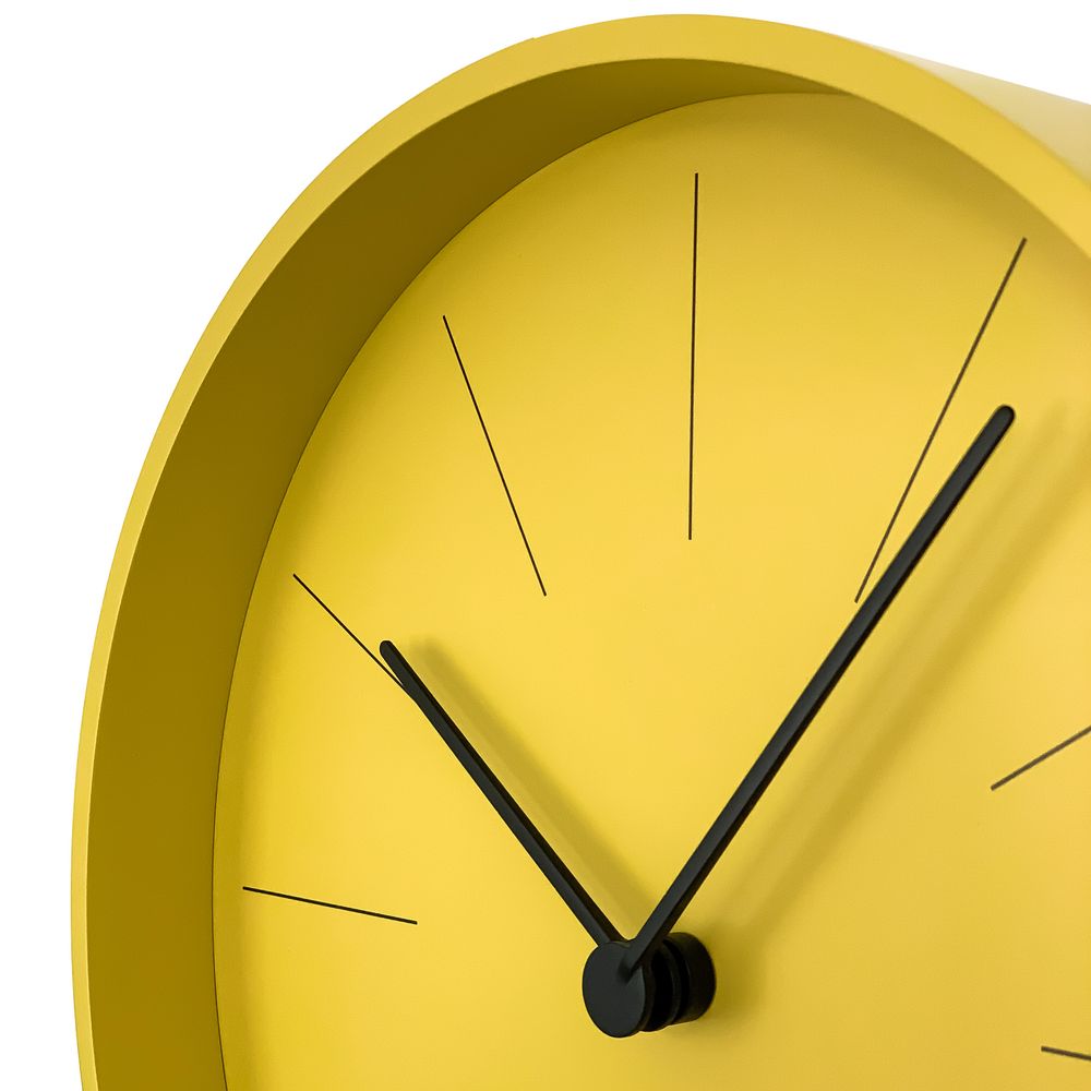 Яркое и сочное сочетание желтого корпуса и контрастирующих черных деталей настенных часов Ozzy станет уместным акцентом как в спокойном монохромном, так и в ярком интерьере — дома, в офисе, или же в общественном месте — кафе, зале ожидания, вестибюле.