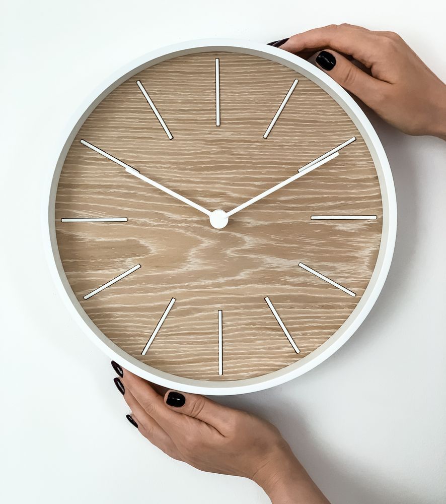 Настенные часы Pleep. Никакой спешки, только плавное течение времени и чистая эстетика.Часы с плавным ходом и бесшумным кварцевым механизмом — можно повесить их в спальне или в детской комнате и не переживать за спокойный сон.