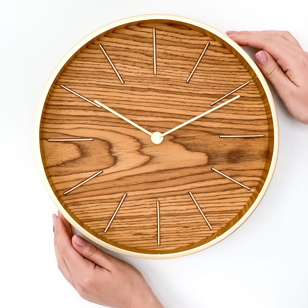 Настенные часы Pleep. Никакой спешки, только плавное течение времени и чистая эстетика.Часы с плавным ходом и бесшумным кварцевым механизмом — можно повесить их в спальне или в детской комнате и не переживать за спокойный сон.