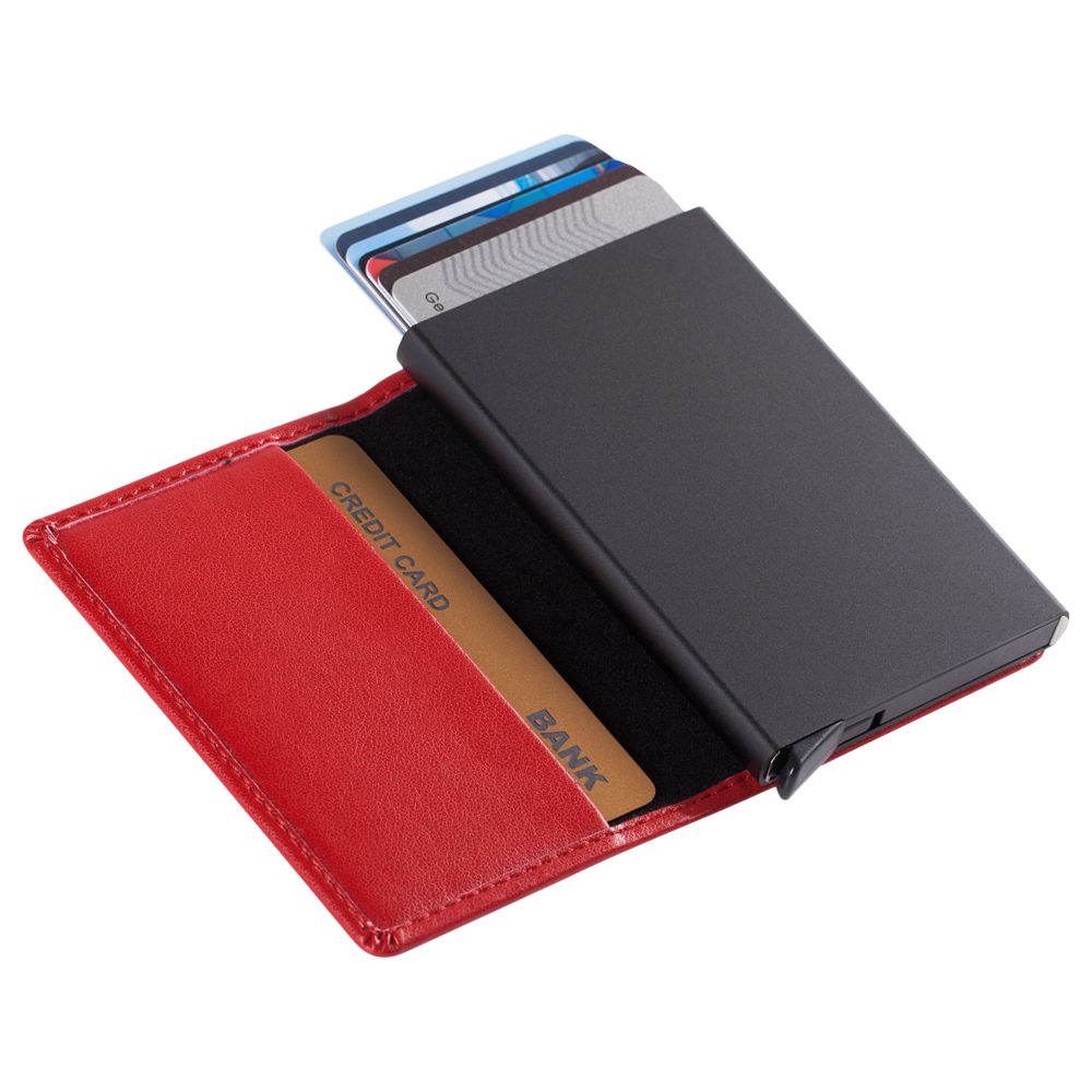 Футляр с выдвижным механизмом имеет защиту RFID. Вмещает 8 карточек.