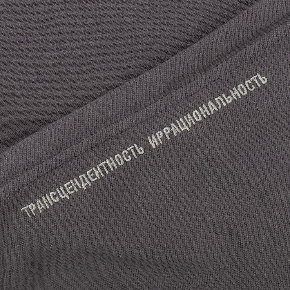 Все привыкли, что надписи на толстовках печатаются посередине груди. Все неправильное, иначе говоря, иррациональное, может вывести наше сознание на новый — трансцендентальный уровень, находящийся за пределами возможного опыта. Всего два слова в неожиданном месте — и вам доступны новые миры!Толстовка унисекс приталенного кроя с капюшоном.