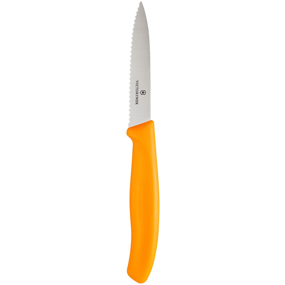 - нож для овощей с волнистым лезвием, оранжевый 19 см, лезвие 8 см;