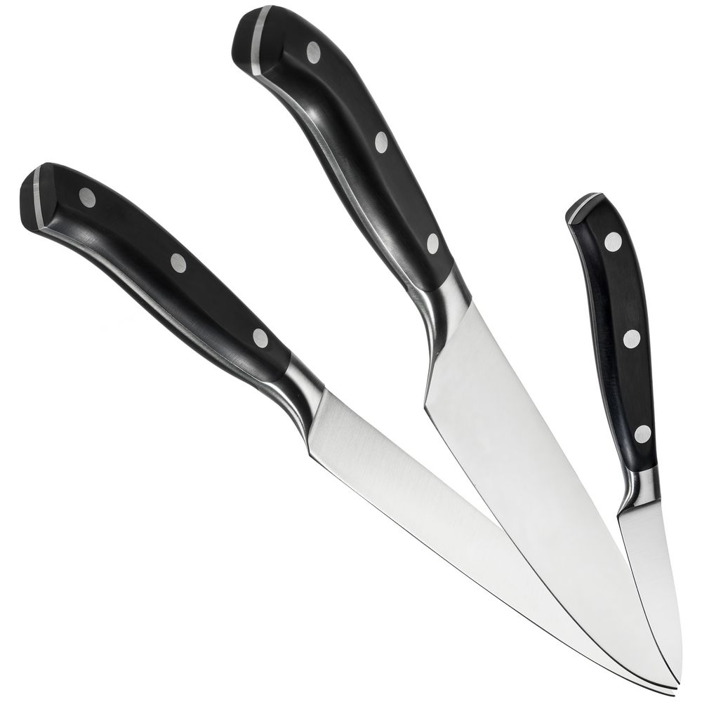 В набор входят 3 самых востребованных поварских ножа из кованой стали: