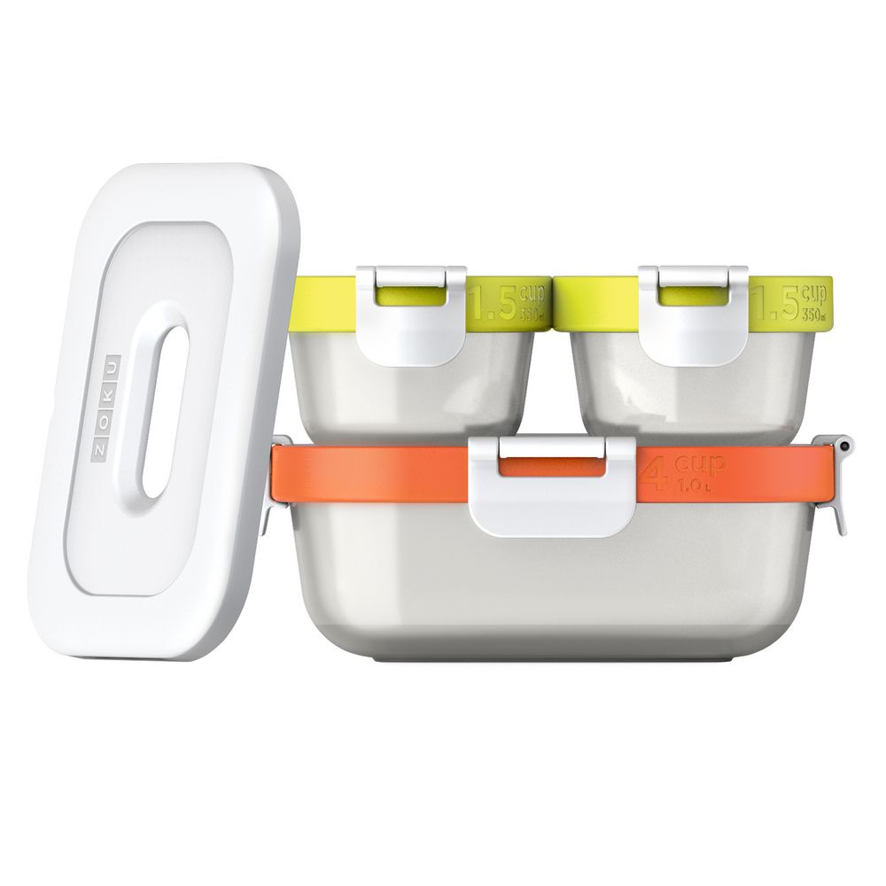 В набор входит: 2 контейнера объемом 350 мл и 1 контейнер объемом 1 л с крышками; 1 охлаждающий блок.