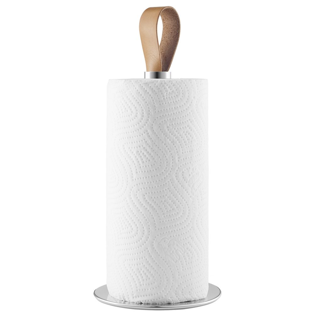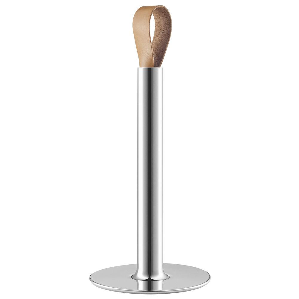 Металлический держатель с кожаной петлей для переноски подходит для большинства бумажных полотенец. Утяжеленное прорезиненное основание придает устойчивость и не оставляет царапин на столе.