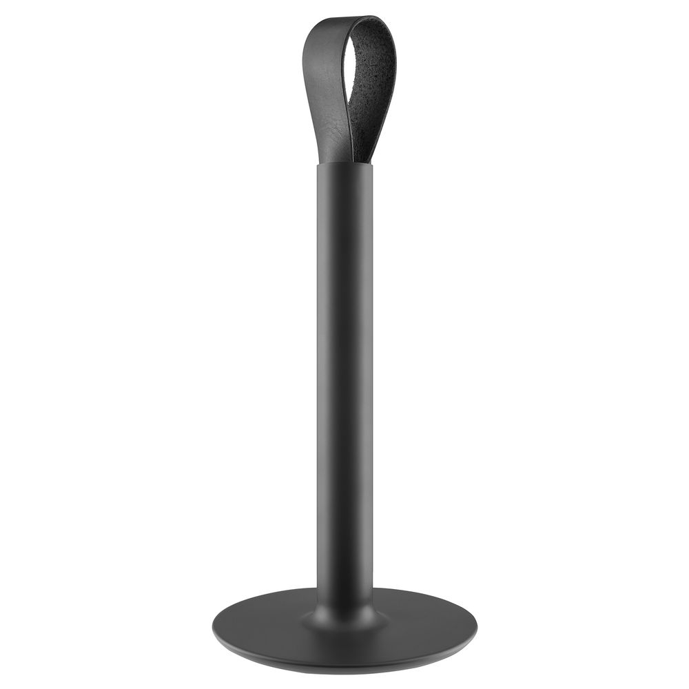 Металлический держатель с кожаной петлей для переноски подходит для большинства бумажных полотенец. Утяжеленное прорезиненное основание придает устойчивость и не оставляет царапин на столе.