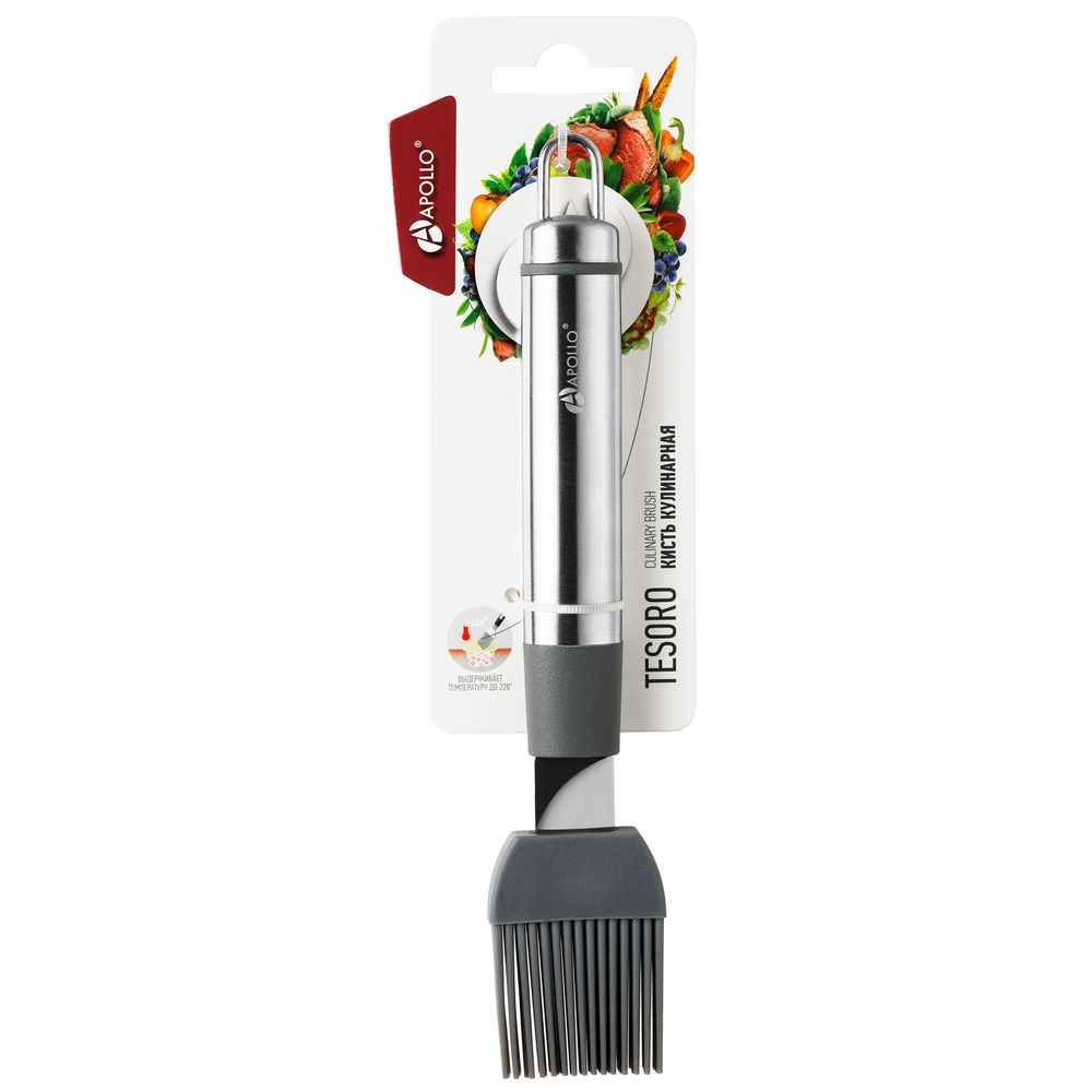 Кулинарная кисть Tesoro предназначена для смазывания маслом, яйцом или кремом холодных и горячих блюд, а также подойдет для смазывания сковород, противней и другой посуды. Рабочая часть кисти выполнена из силикона — современного и комфортного материала, который выдерживает высокие температуры, не царапает антипригарное, тефлоновое или керамическое покрытия посуды и хорошо моется. На изделии есть петля для подвешивания.Не предназначено для использования на открытом огне, в духовке, на варочной панели любого типа. Выдерживает температуру до 220 °С.