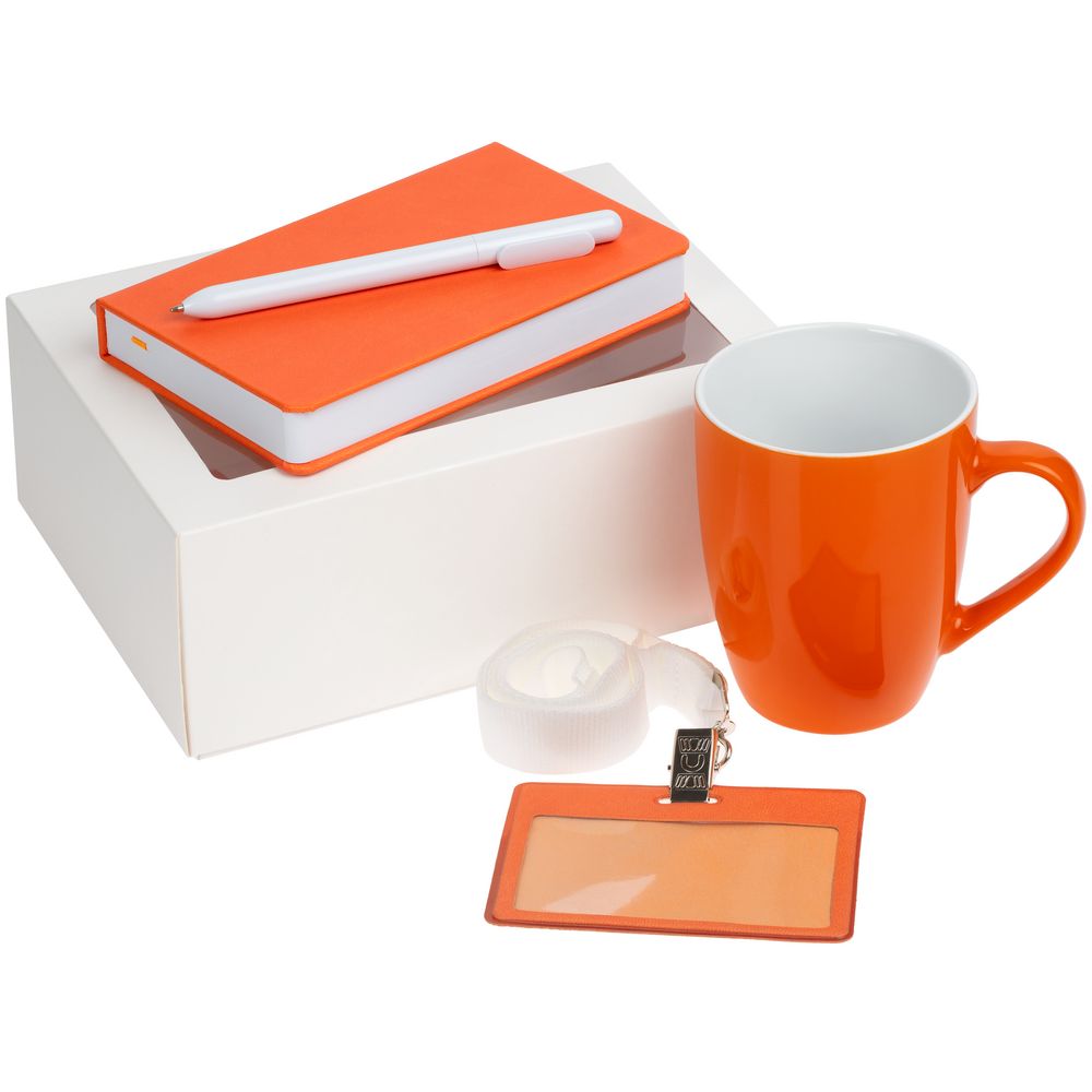 Лаконичный приветственный набор Hop In содержит все самое необходимое для успешной и быстрой адаптации нового сотрудника в команде. Это основные офисные принадлежности — блокнот и ручка — для подробной записи идей и планов; чехол для пропуска на ленте — для безопасности и идентификации; компактная кружка — для приятного перерыва в компании с новыми коллегами.