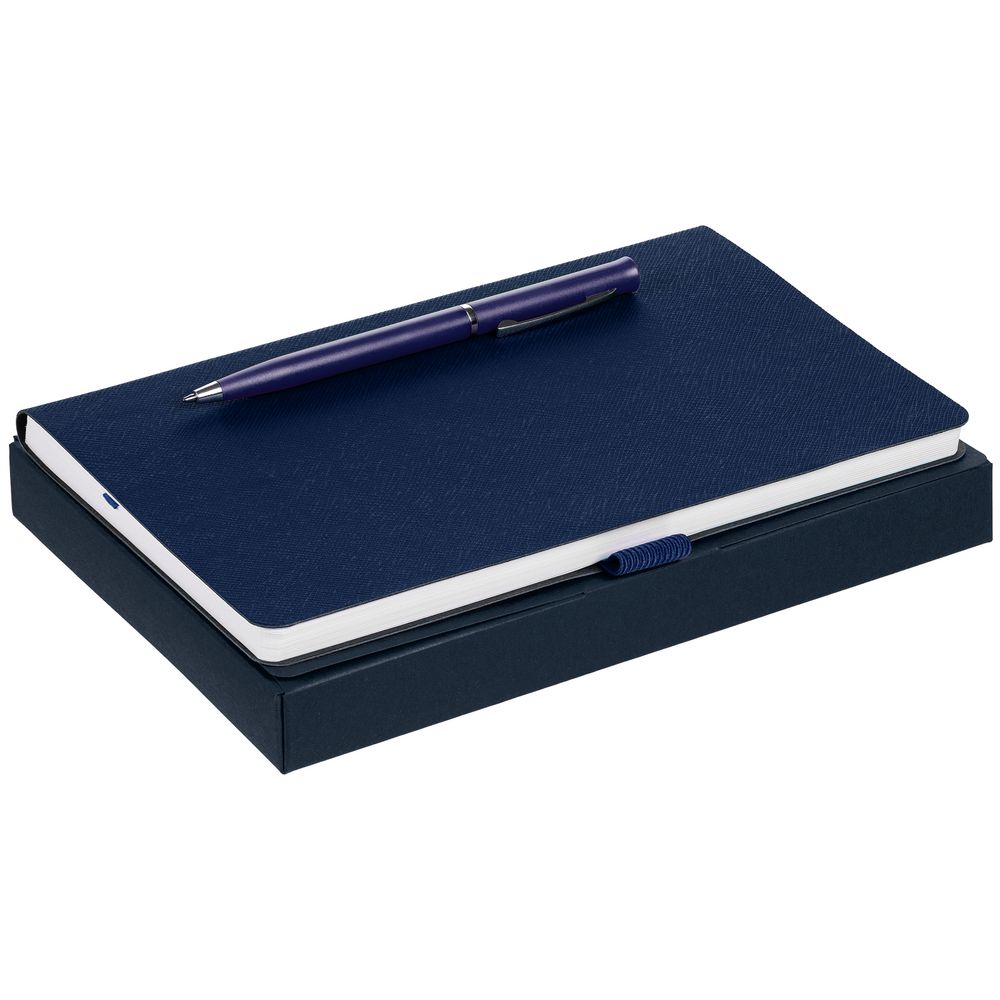 Зауженный ежедневник и ручка комплементарного оттенка в простой лаконичной коробке — готовое предложение делового подарка для сотрудников и партнеров.