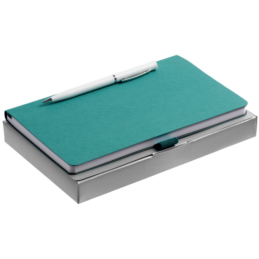 Зауженный ежедневник и ручка комплементарного оттенка в простой лаконичной коробке — готовое предложение делового подарка для сотрудников и партнеров.