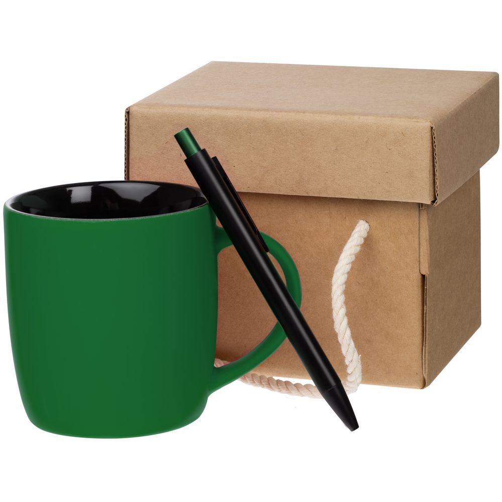 Набор Color Block: кружка и ручка, зеленый с черным