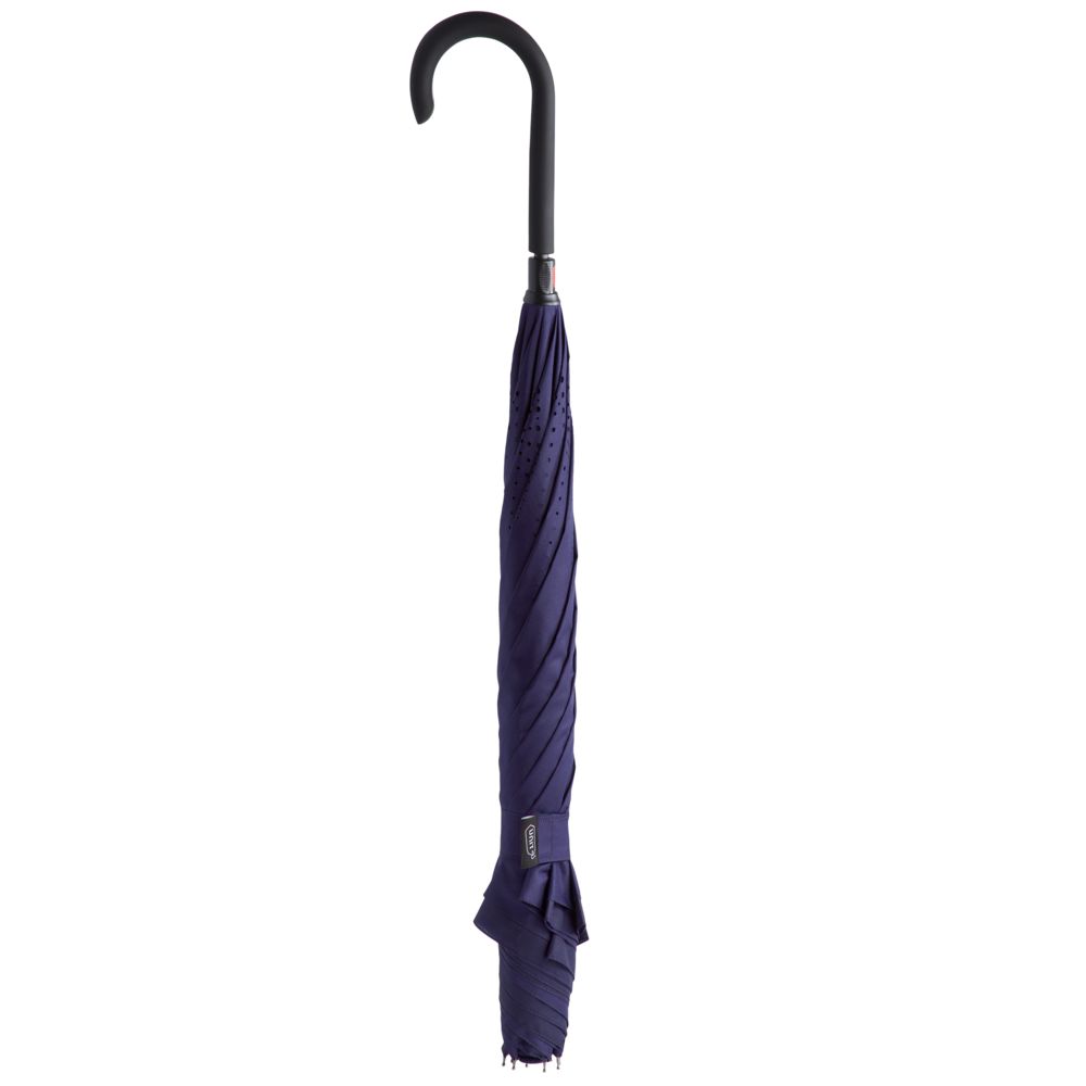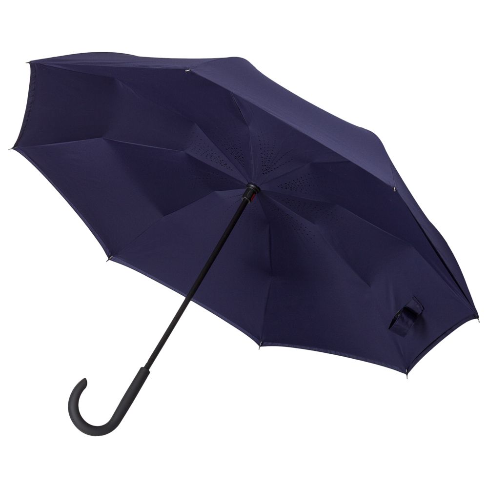 Это зонт-наоборот, зонт-наизнанку. Складываясь после дождя, он прячет мокрую поверхность в себя, а сухая остается снаружи. Для просушки его можно не только подвесить за ручку, как обычные зонты, но и поставить прямо на пол в полусложенном состоянии. Итог — мягкая щадящая просушка и минимум занятого мокрым зонтиком места.