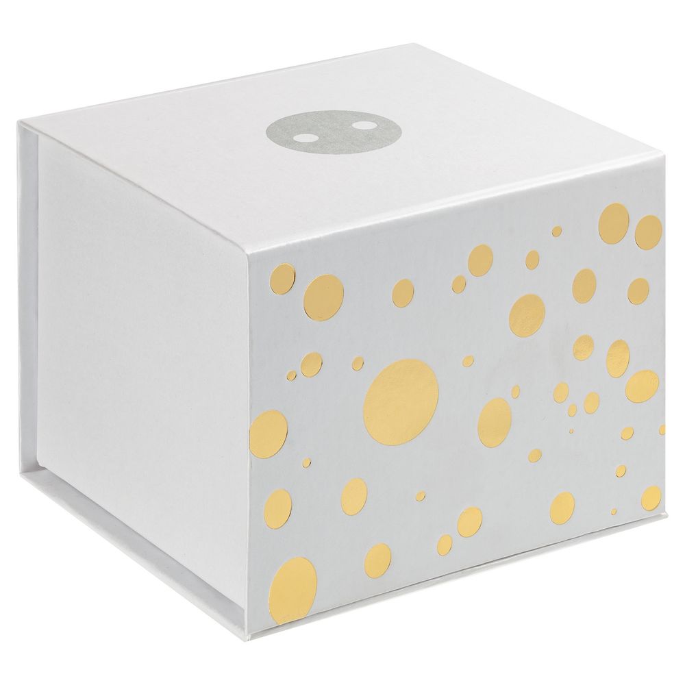 Поставляется в подарочной коробке из белого картона с печатью на крышке в виде пятачка и тиснением по бокам в форме пятнышек.