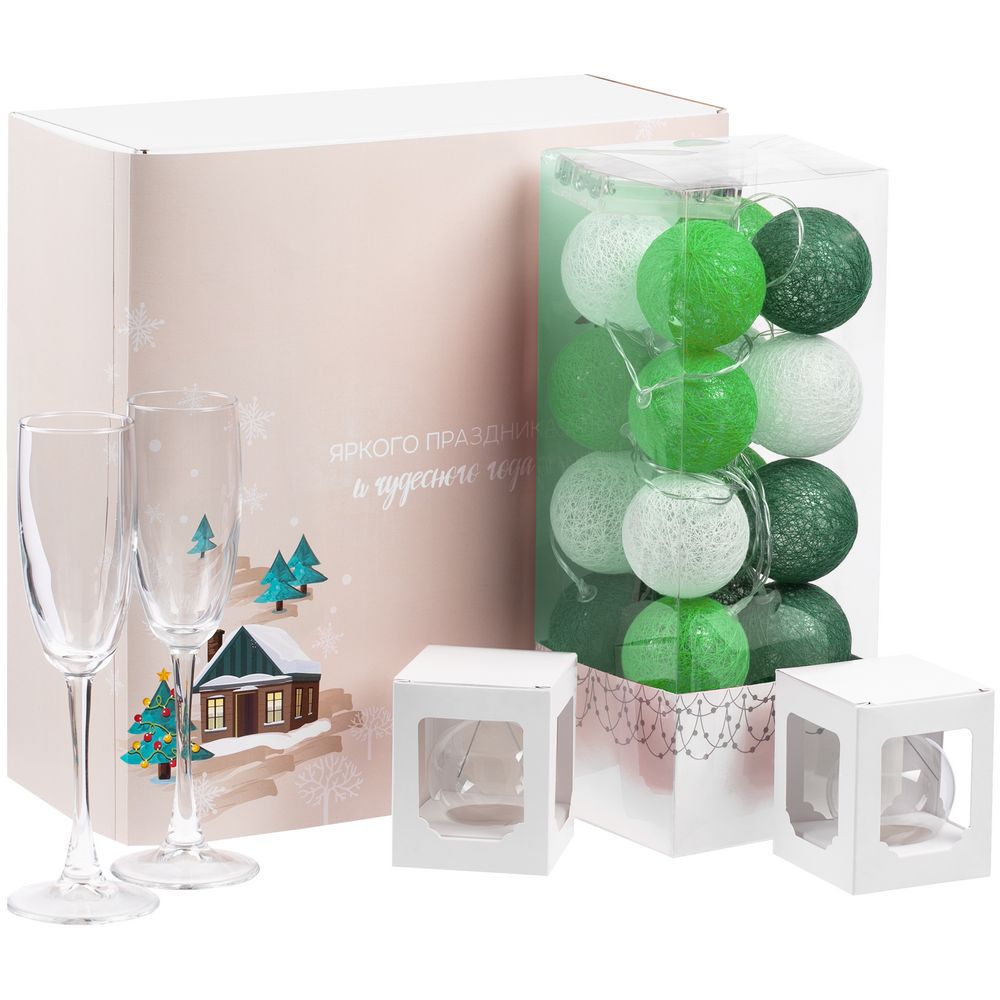 Праздничное настроение изнутри и снаружи! Шарики и гирлянды для украшения интерьера и изящные винные бокалы, чтобы наполнить их любимым напитком.