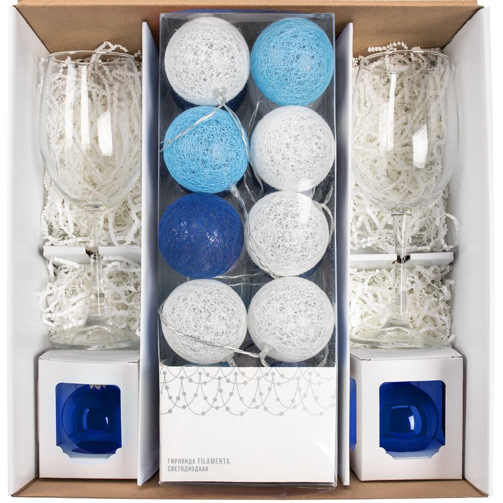 Праздничное настроение изнутри и снаружи! Шарики и гирлянды для украшения интерьера и изящные винные бокалы, чтобы наполнить их любимым напитком.