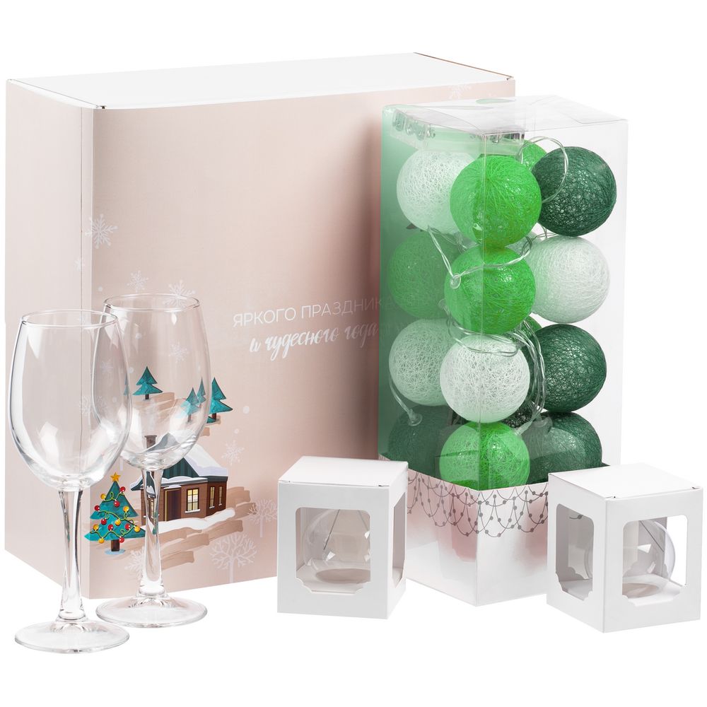 Праздничное настроение изнутри и снаружи! Шарики и гирлянды для украшения интерьера и изящные винные бокалы, чтобы наполнить их любимым напитком.