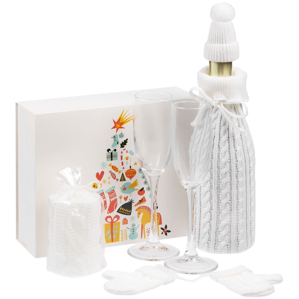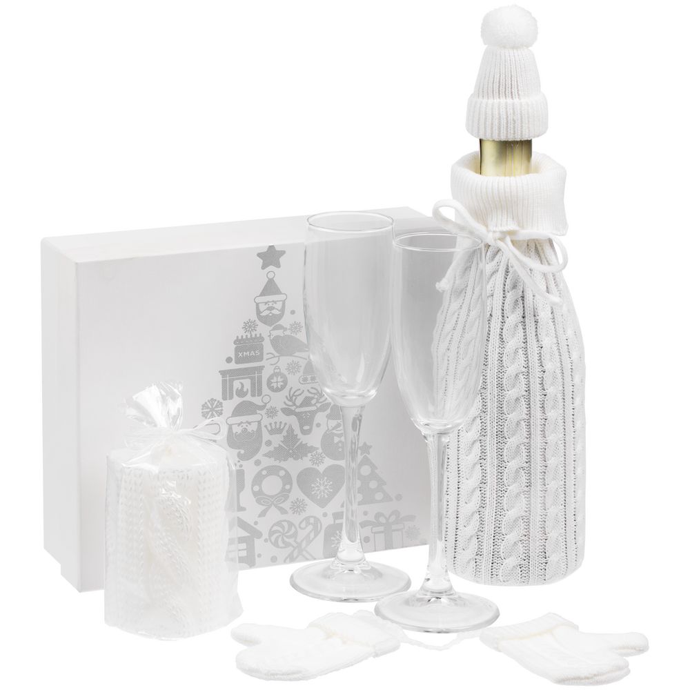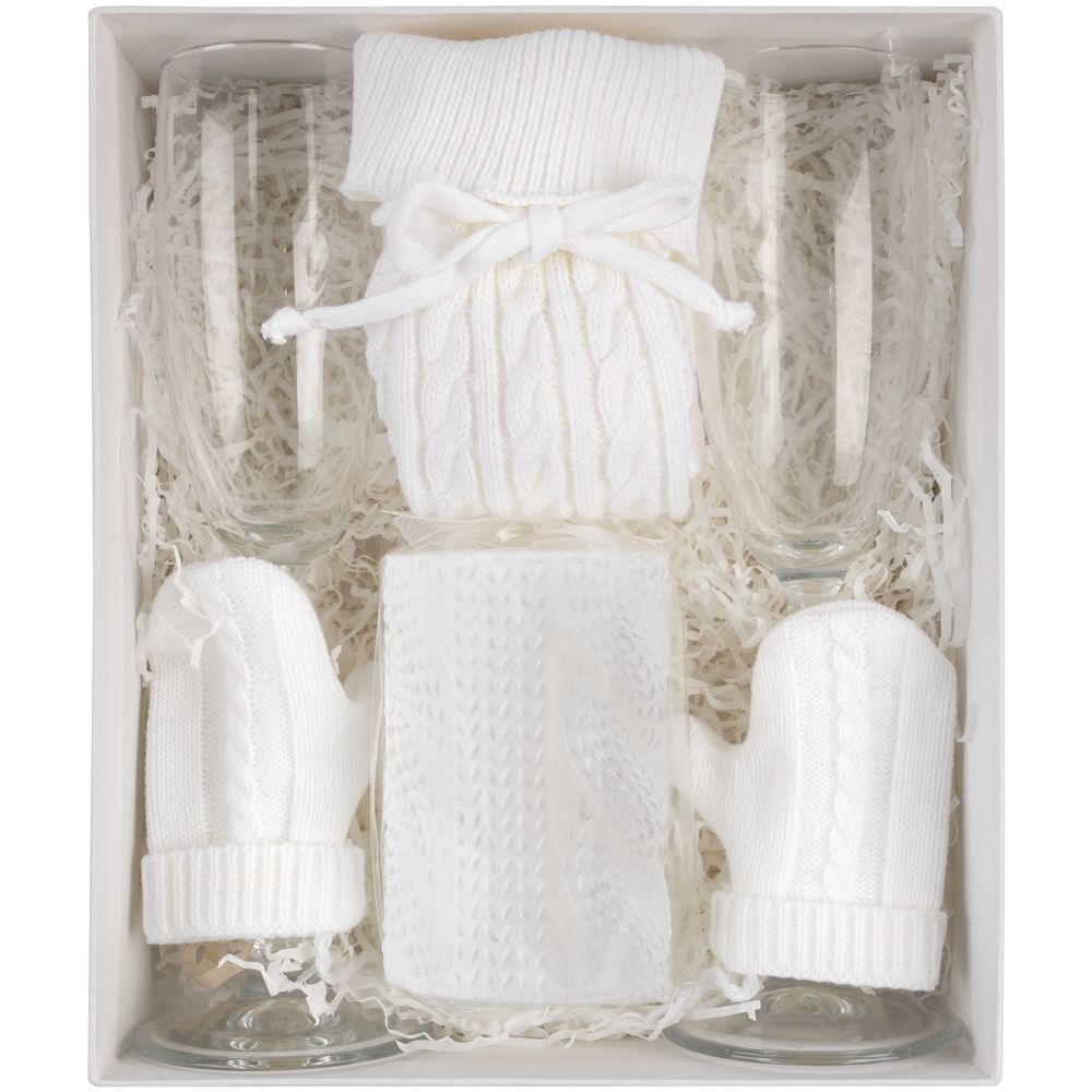 Когда метет за окном, хочется спрятаться в тепле дома и объятиях любимого человека. Вязаные аксессуары для украшения интерьера, свечка для создания уюта и игристое в бокалах — для создания праздничного настроения.