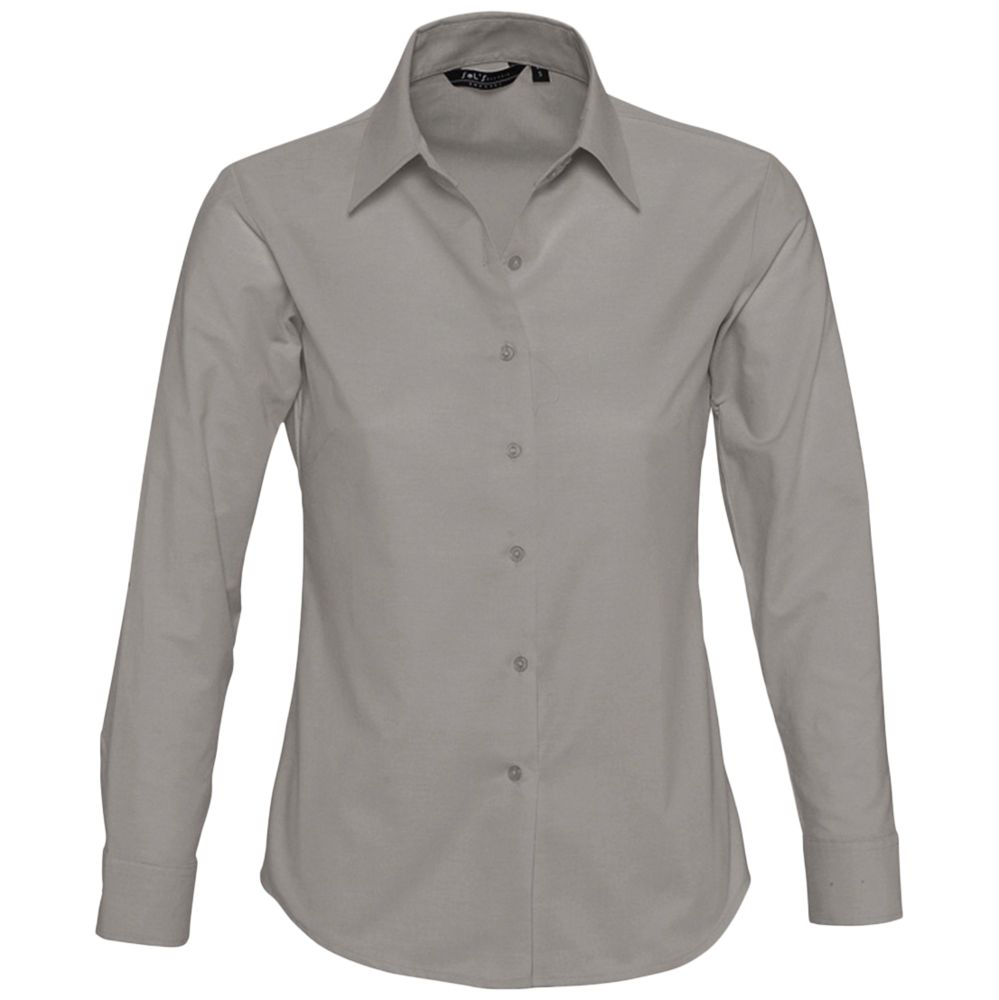 Рубашка из ткани «Оксфорд». Вытачки на груди, классический воротник, регулируемые закругленные манжеты, планка с семью пуговицами в тон.