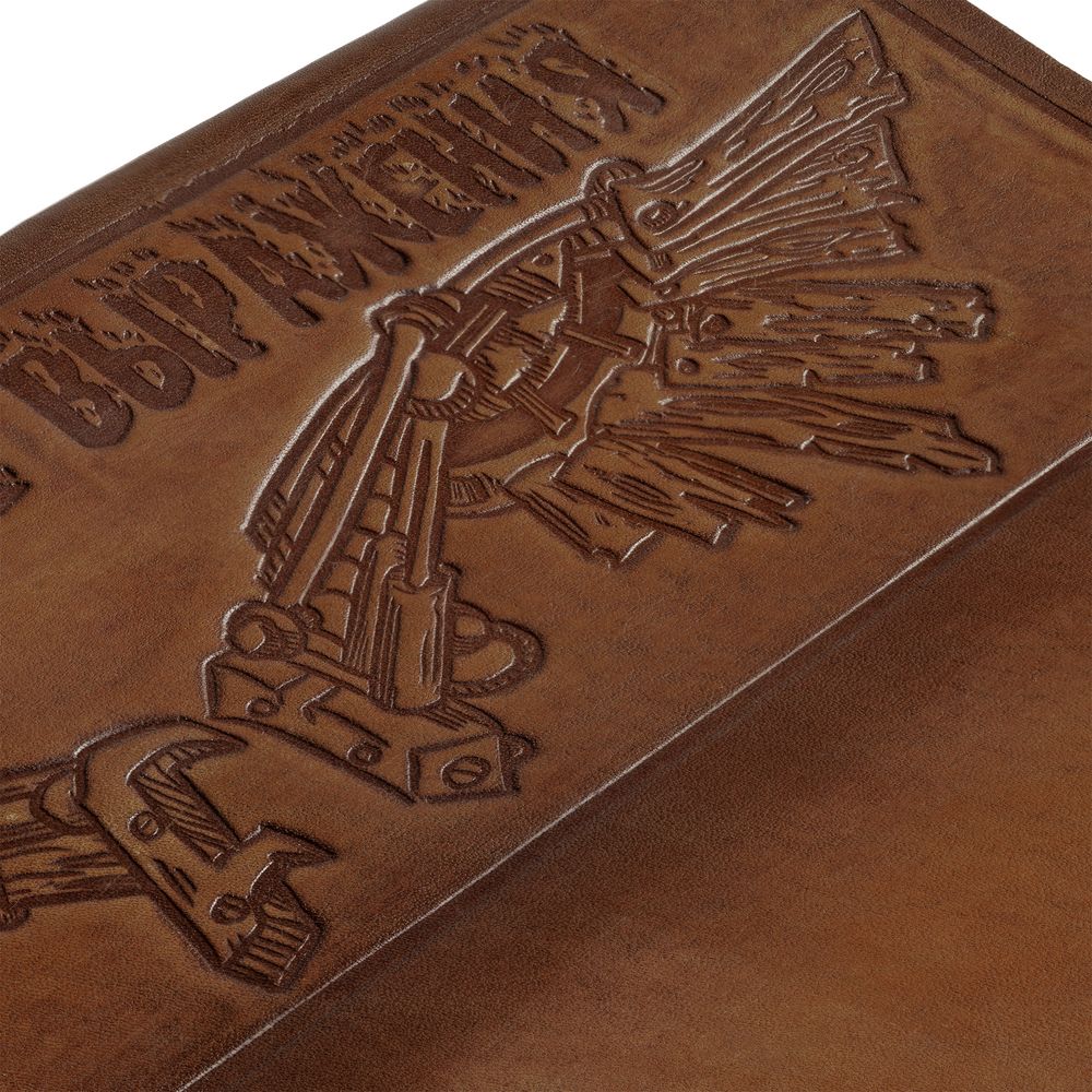 Блокнот на кольцах с обложкой из натуральной кожи с тиснением.