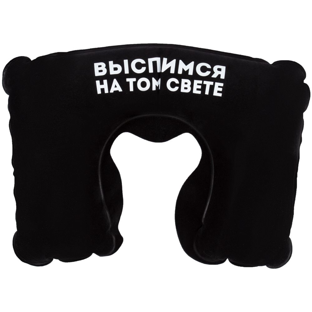 Надувная подушка под шею в чехле «Выспимся на том свете», черная